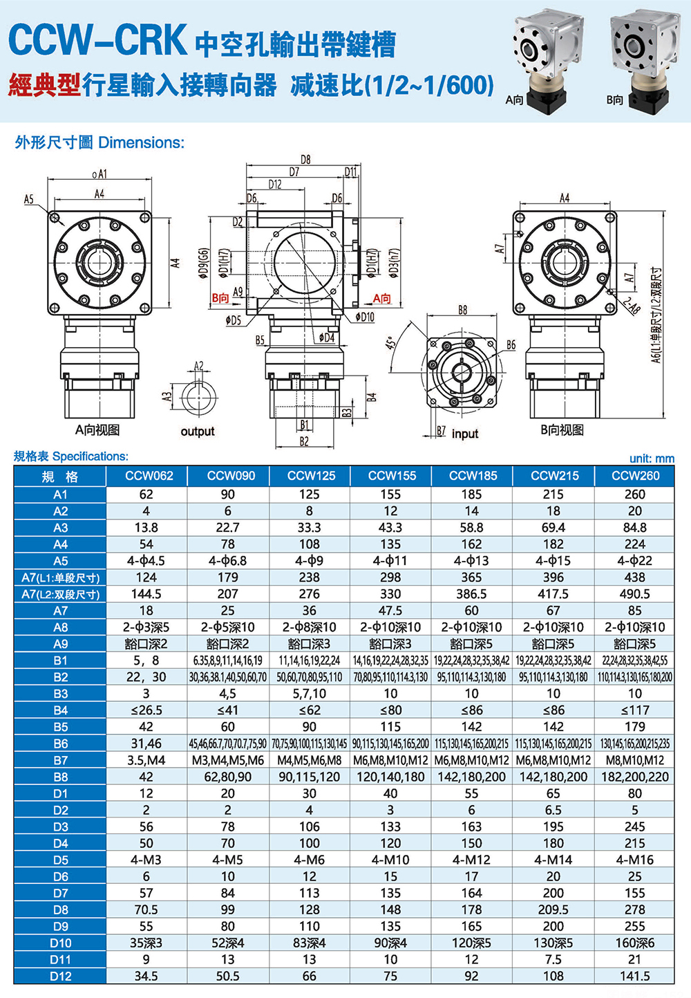 多樣化:輸出軸種類多樣化,有單出力軸型、雙出力軸型、中空軸型、中空法蘭型、中空軸錐形緊迫性、螺桿直線型、螺牙直線型。