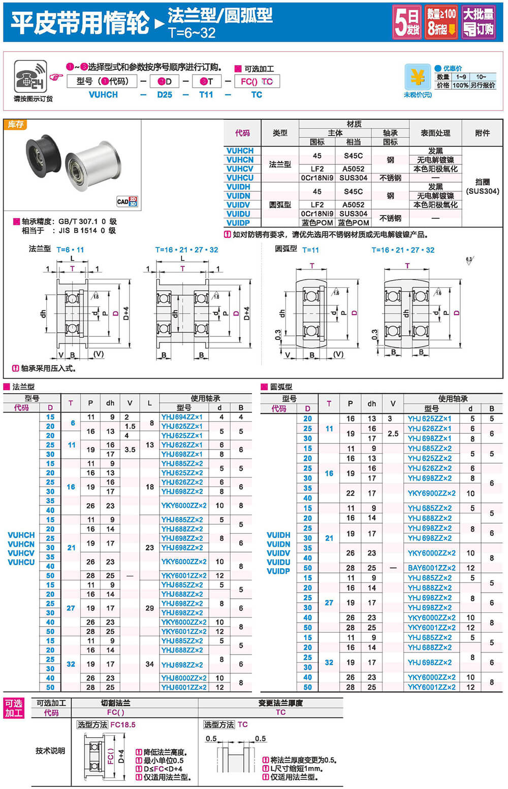 滑輪惰輪在機械設備中與平皮帶圓皮帶配合使用,起到動力傳遞、輸出、過渡、皮帶張緊用等,用于皮帶張緊時也可稱作張緊輪