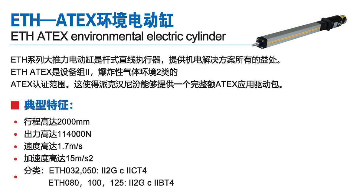 ETH系列大推力電動缸是桿式直線執(zhí)行器,提供機電解決方案所有的益處。