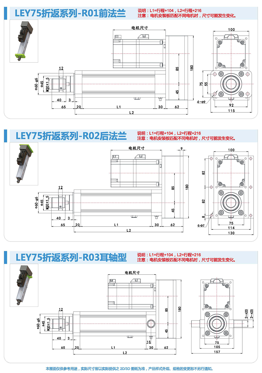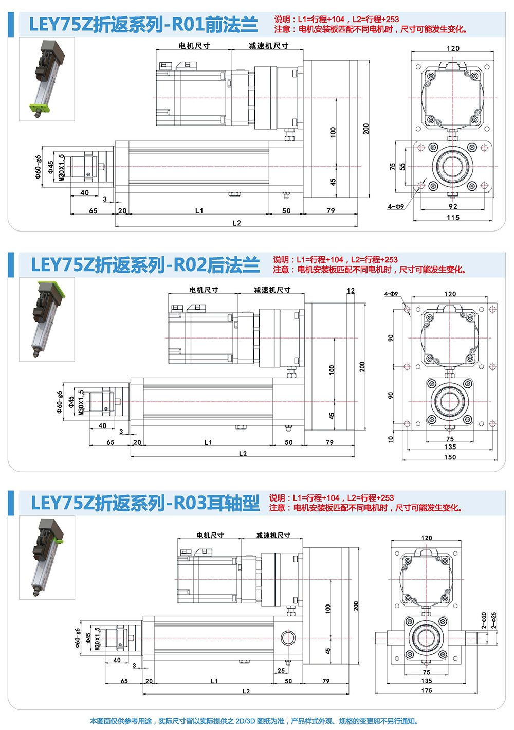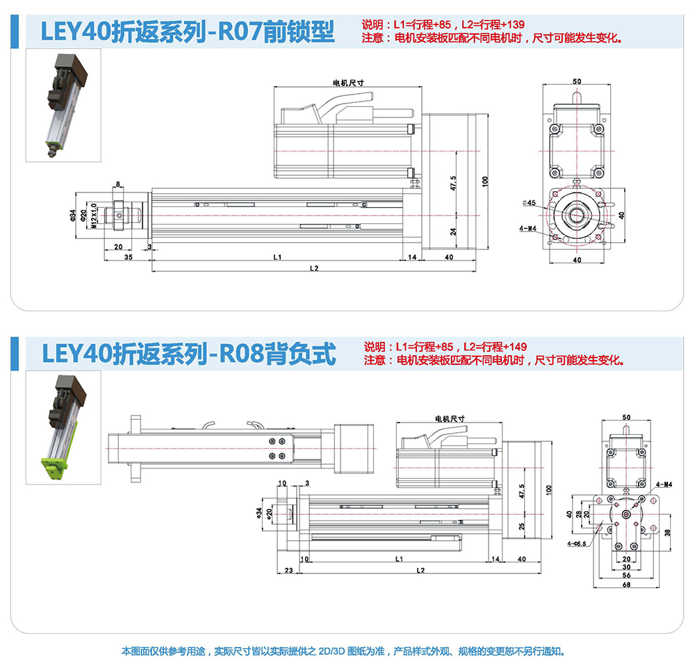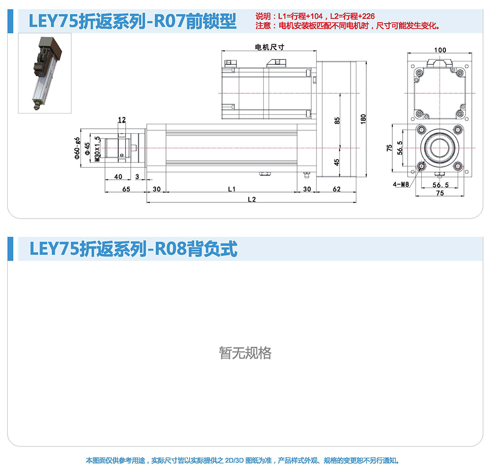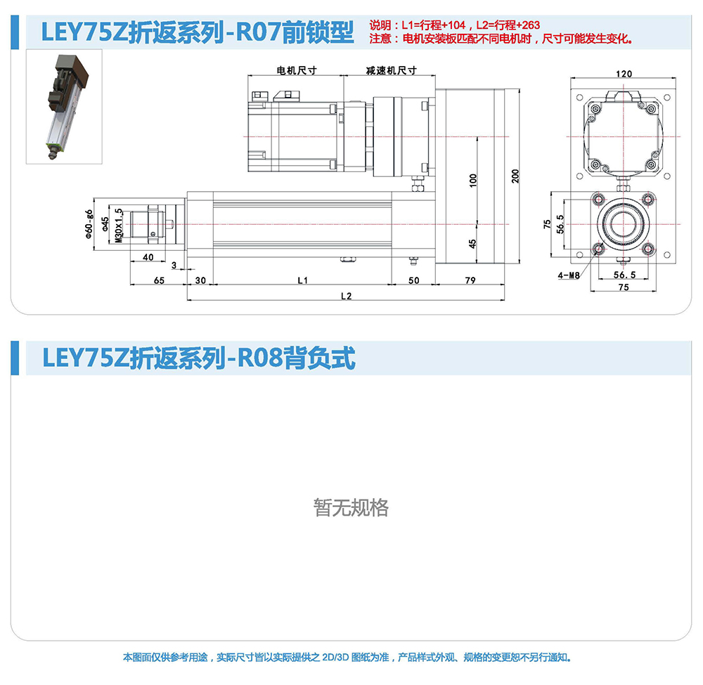 折返式電動缸由于整體長度短,適用于安裝位置比較小的場合。同時(shí)本方案選用的同步帶,具有強(qiáng)度高、間隙小壽命長的特點(diǎn),使整個(gè)電動缸具有較高的控制性和控制精度。伺服電機(jī)與電動缸配合靈活,安裝容易,設(shè)定簡單,使用方便。