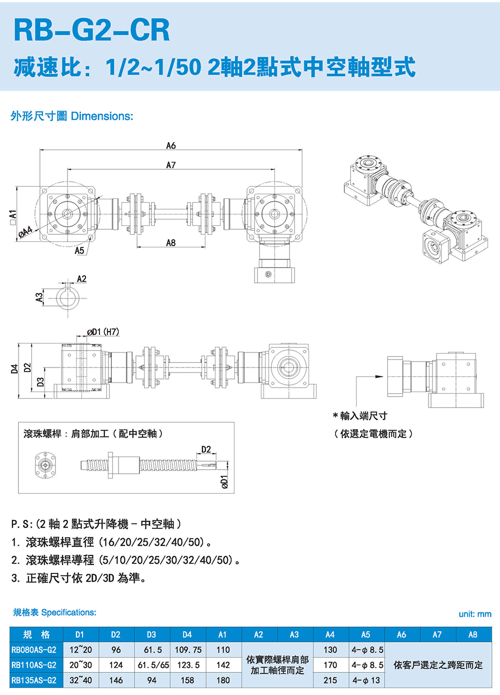 多樣化:輸出軸種類(lèi)多樣化,有單出力軸型、雙出力軸型、中空軸型、中空法蘭型、中空軸錐形緊迫性、螺桿直線型、螺牙直線型。