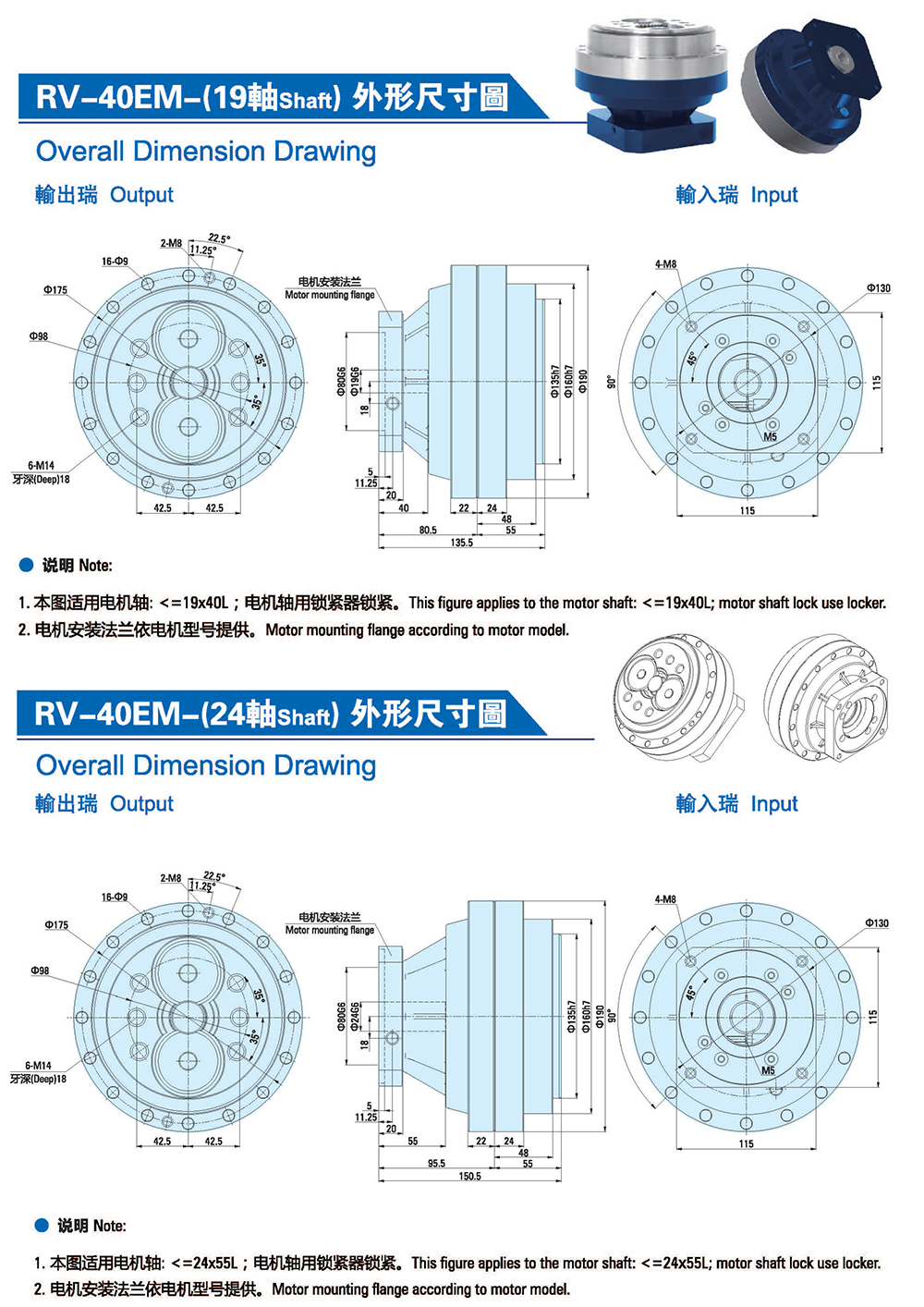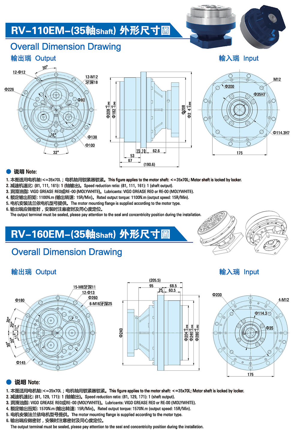多樣化:輸出軸種類多樣化,有單出力軸型、雙出力軸型、中空軸型、中空法蘭型、中空軸錐形緊迫性、螺桿直線型、螺牙直線型。