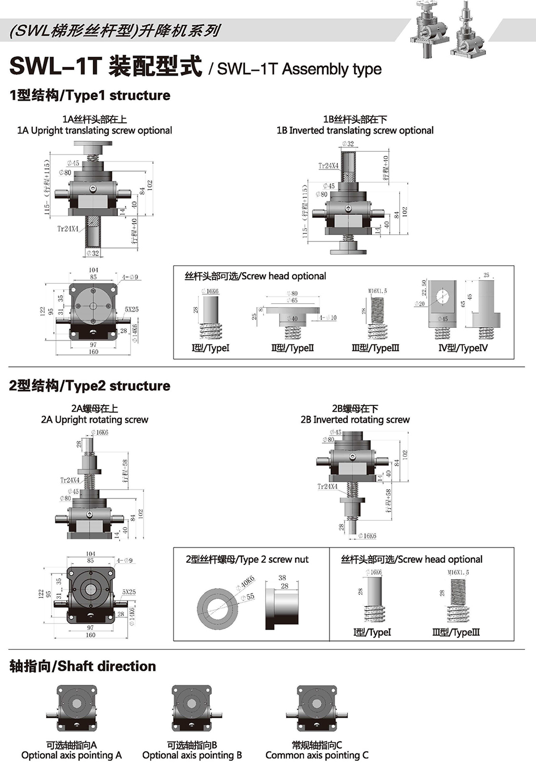 多樣化:輸出軸種類多樣化,有單出力軸型、雙出力軸型、中空軸型、中空法蘭型、中空軸錐形緊迫性、螺桿直線型、螺牙直線型。