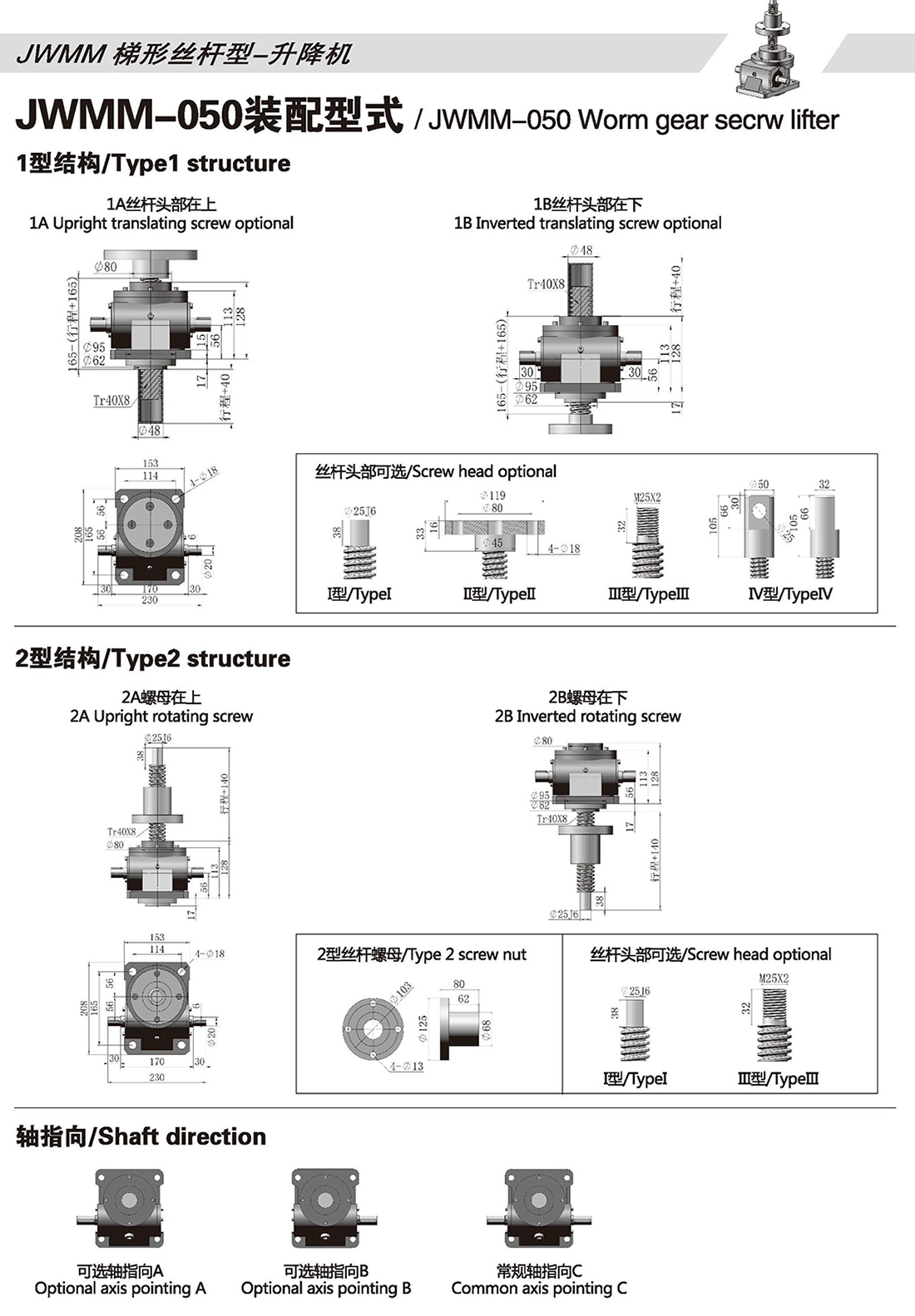 多樣化:輸出軸種類(lèi)多樣化,有單出力軸型、雙出力軸型、中空軸型、中空法蘭型、中空軸錐形緊迫性、螺桿直線型、螺牙直線型。