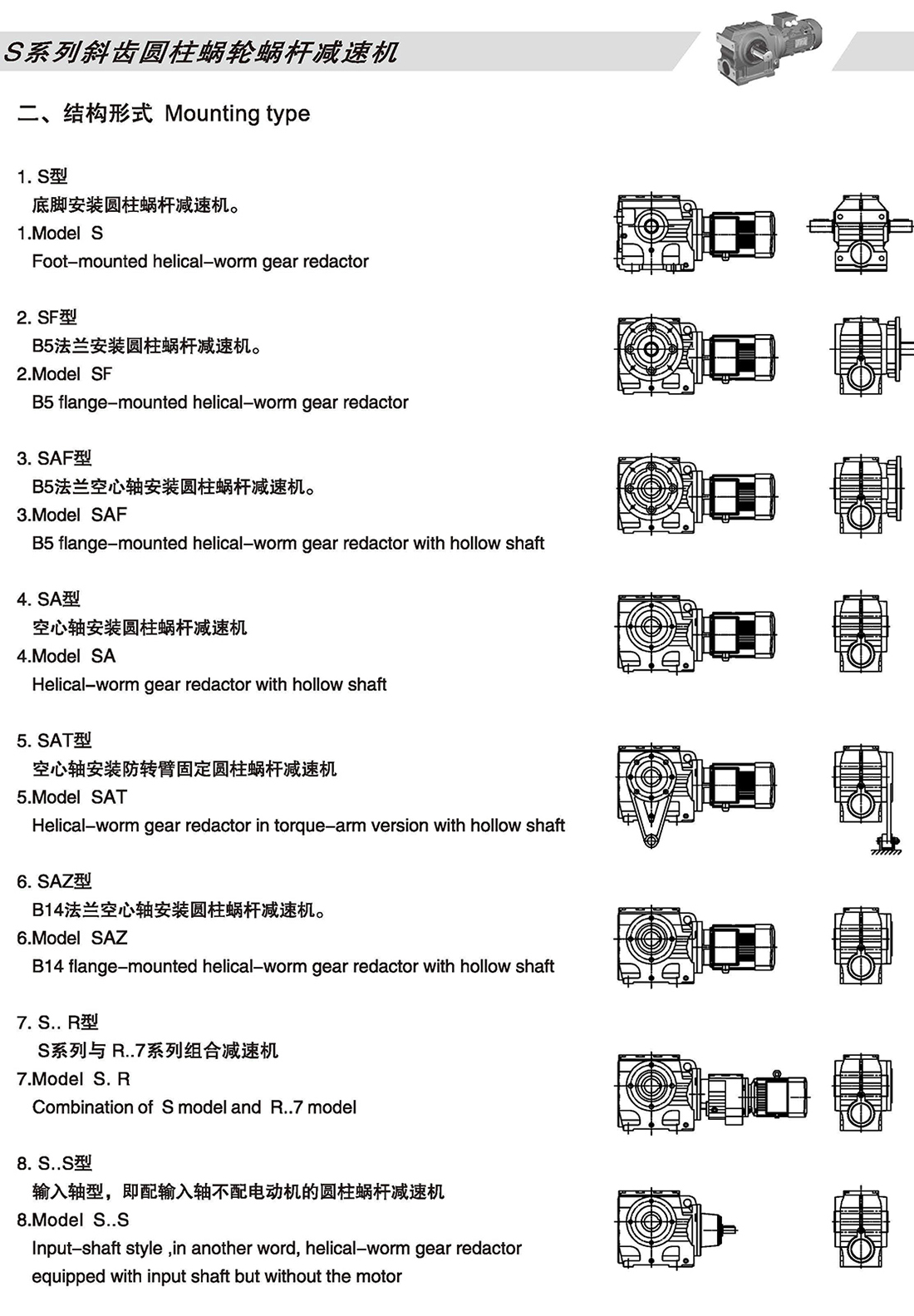 多樣化:輸出軸種類多樣化,有單出力軸型、雙出力軸型、中空軸型、中空法蘭型、中空軸錐形緊迫性、螺桿直線型、螺牙直線型。