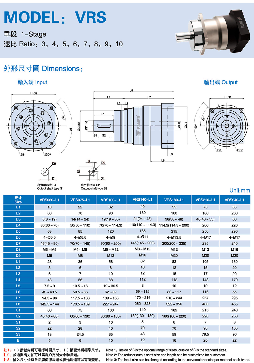 多樣化:輸出軸種類多樣化,有單出力軸型、雙出力軸型、中空軸型、中空法蘭型、中空軸錐形緊迫性、螺桿直線型、螺牙直線型。