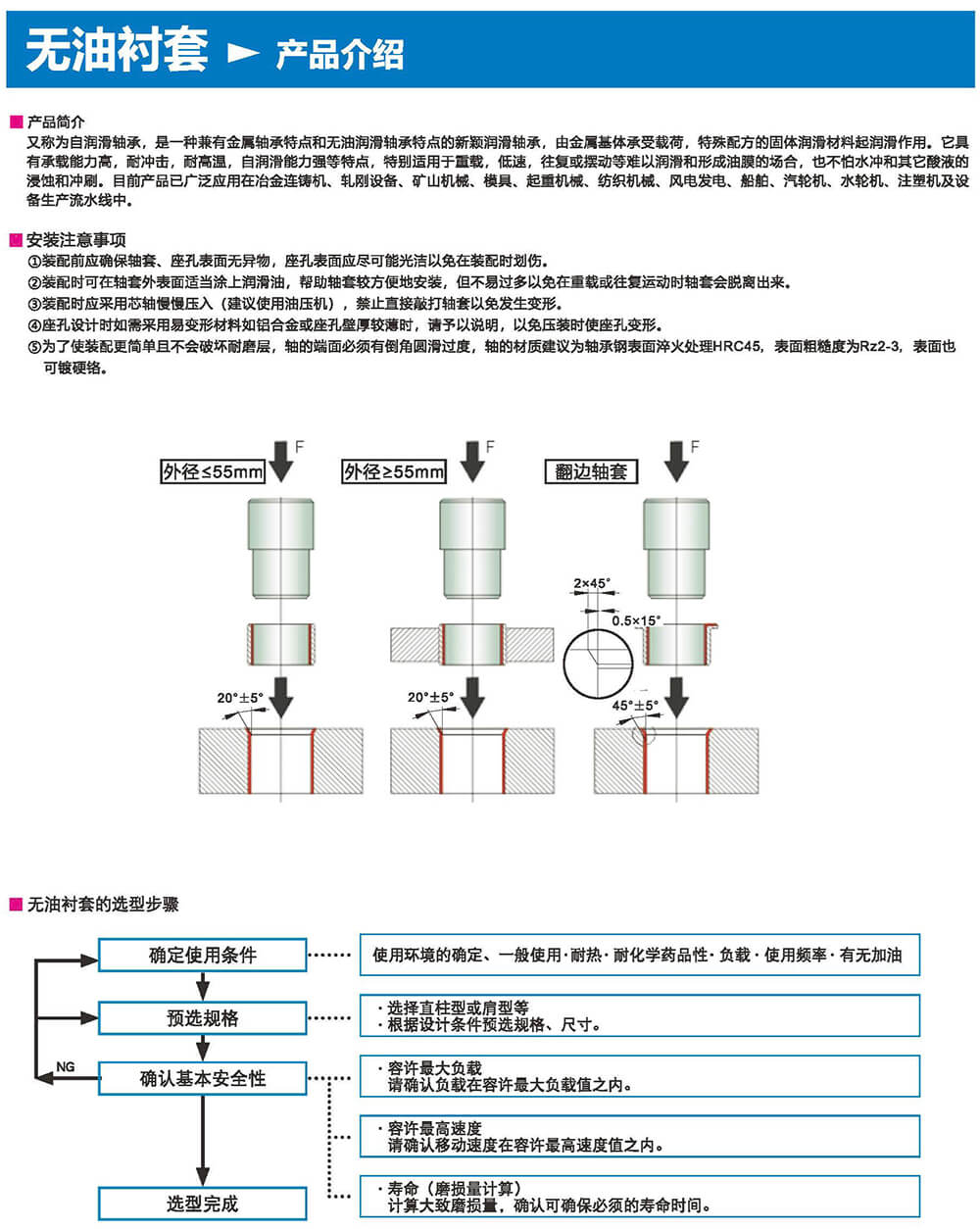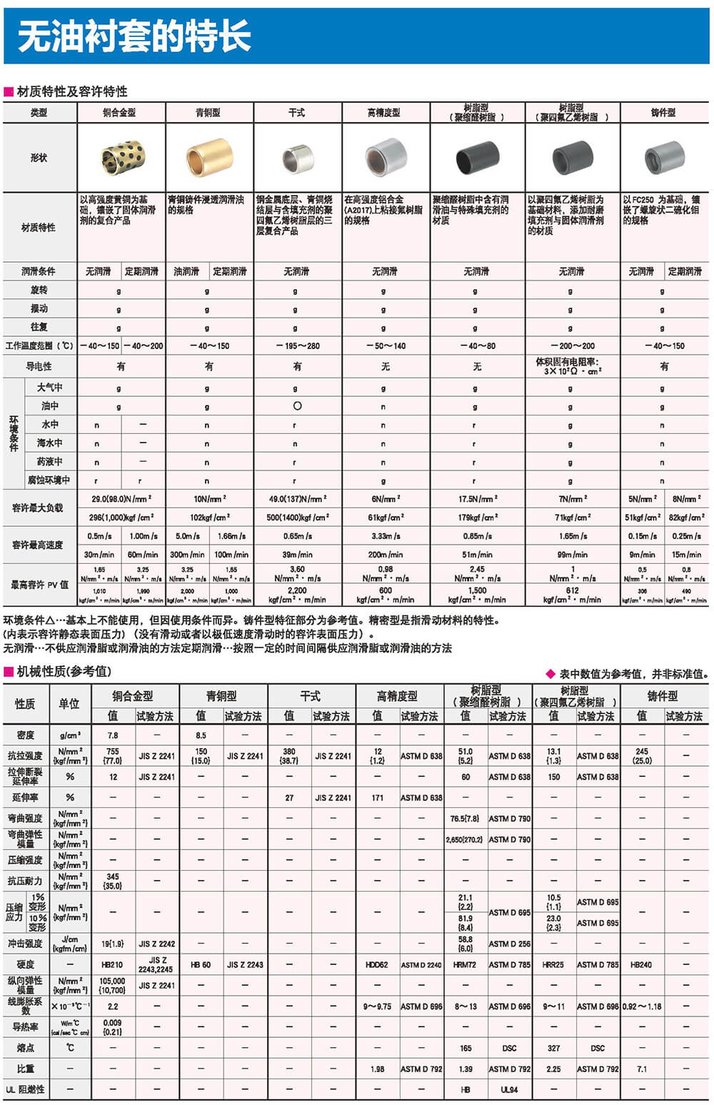 又稱為自潤滑軸承,是-一種兼有金屬軸承特點和無油潤滑軸承特點的新穎潤滑軸承,由金屬基體承受載荷,特殊配方的固體潤滑材料起潤滑作用。它具有承載能力高,耐沖擊,耐高溫,自潤滑能力強等特點,特別適用于重載,低速,往復(fù)或擺動等難以潤滑和形成油膜的場合,也不怕水沖和其它酸液的浸蝕和沖刷。目前產(chǎn)品已廣泛應(yīng)用在冶金連鑄機、軋剛設(shè)備、礦山機械、模具,起重機械.紡織機械、風(fēng)電發(fā)電、船舶、汽輪機、水輪機、注塑機及設(shè)備生產(chǎn)流水線中。