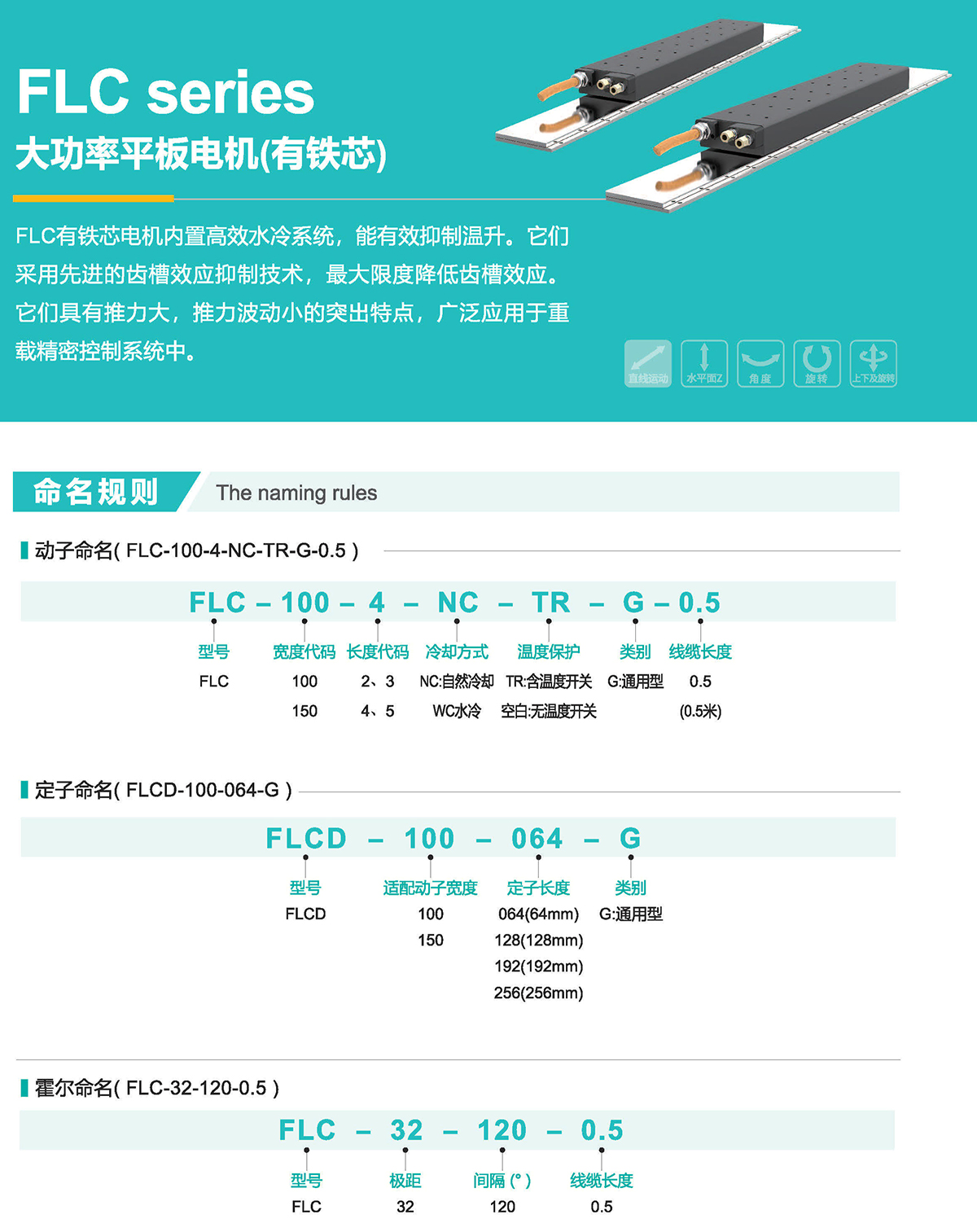 FLC有鐵芯電機(jī)內(nèi)置高效水冷系統(tǒng),能有效抑制溫升。它們采用先進(jìn)的齒槽效應(yīng)抑制技術(shù),最大限度降低齒槽效應(yīng)。