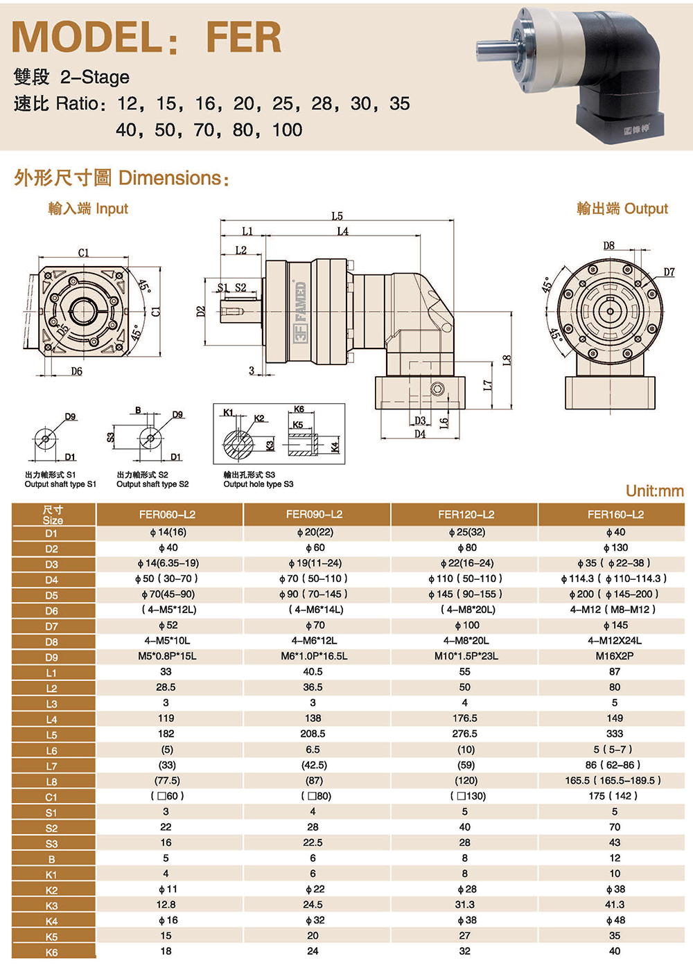 多樣化:輸出軸種類多樣化,有單出力軸型、雙出力軸型、中空軸型、中空法蘭型、中空軸錐形緊迫性、螺桿直線型、螺牙直線型。