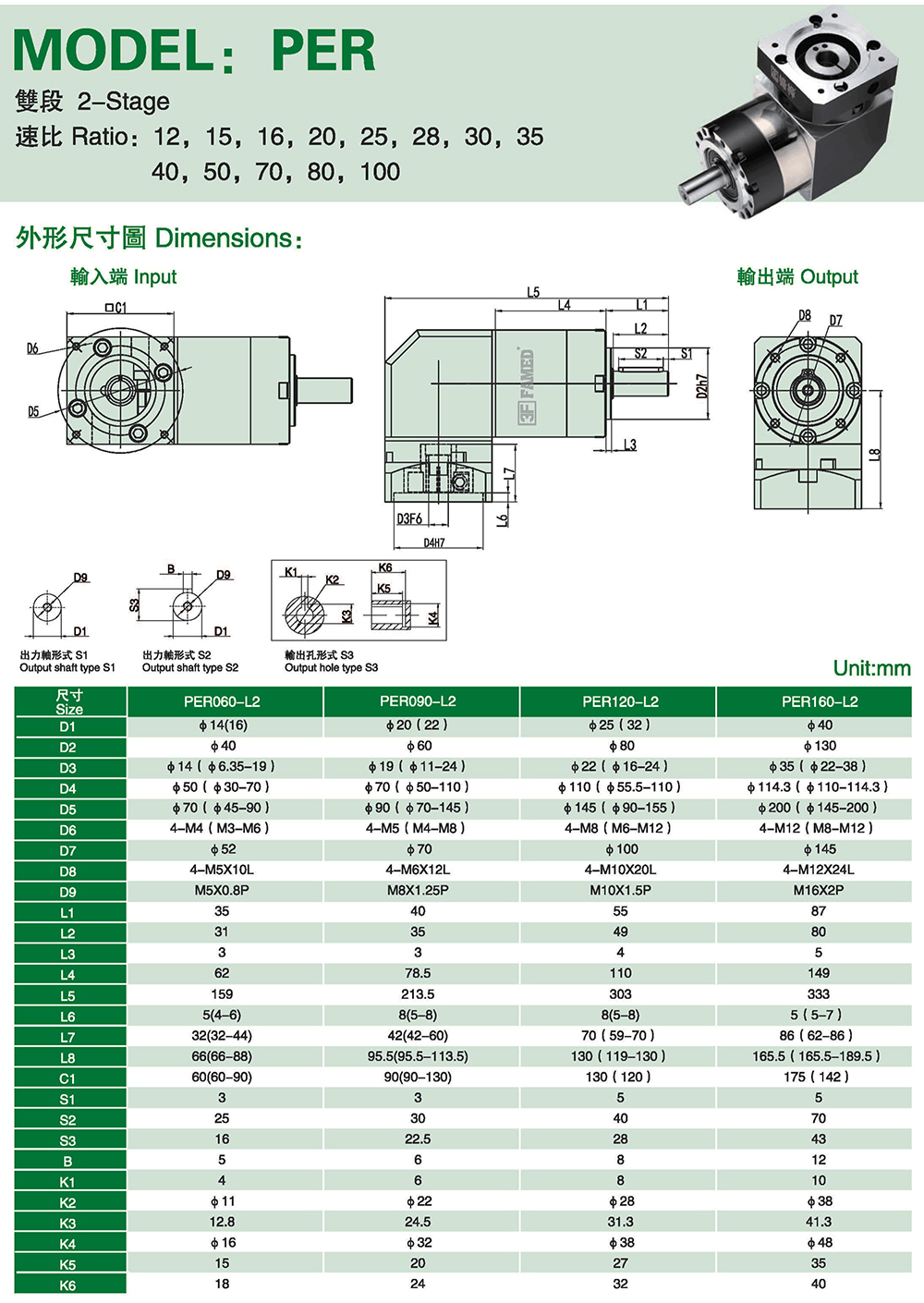 減速比:單段1:3~1:10雙段:1:12~12:100