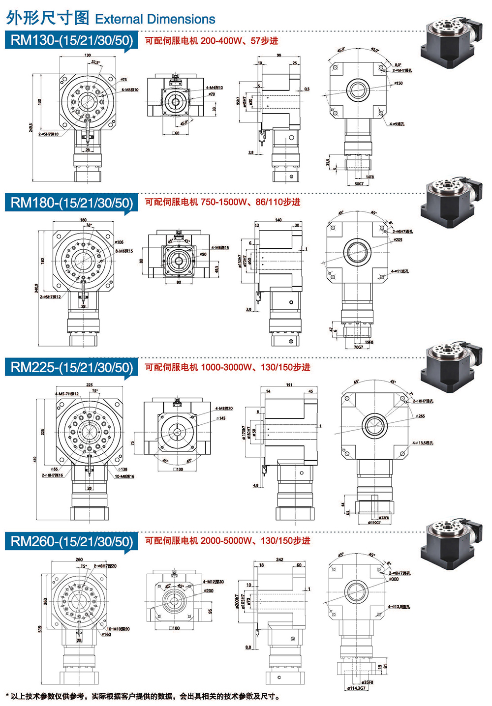 多樣化:輸出軸種類多樣化,有單出力軸型、雙出力軸型、中空軸型、中空法蘭型、中空軸錐形緊迫性、螺桿直線型、螺牙直線型。