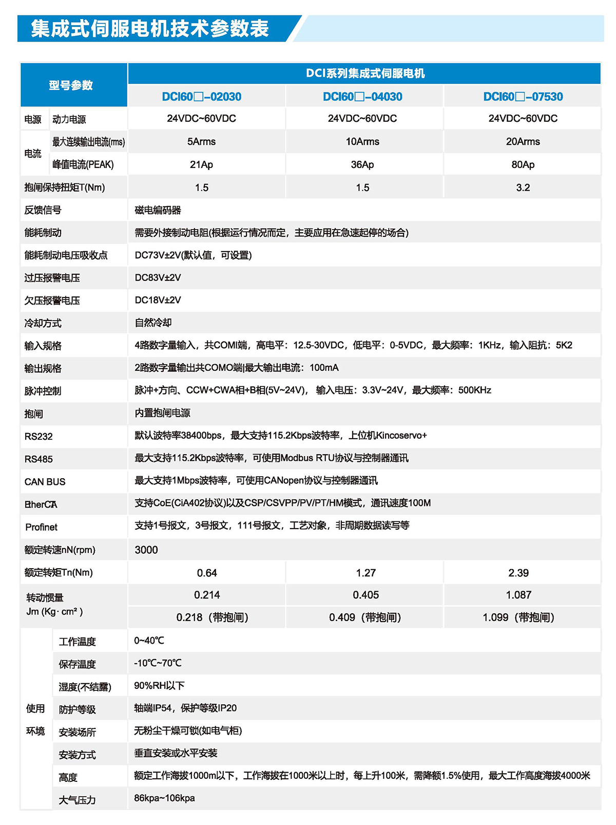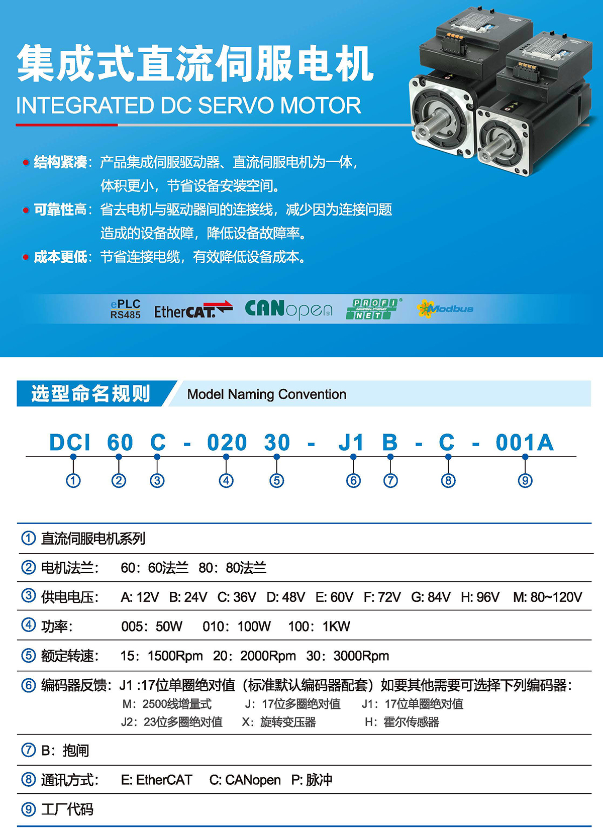 結(jié)構(gòu)緊湊:產(chǎn)品集成伺服驅(qū)動(dòng)器、直流伺服電機(jī)為一體,體積更小,節(jié)省設(shè)備安裝空間。