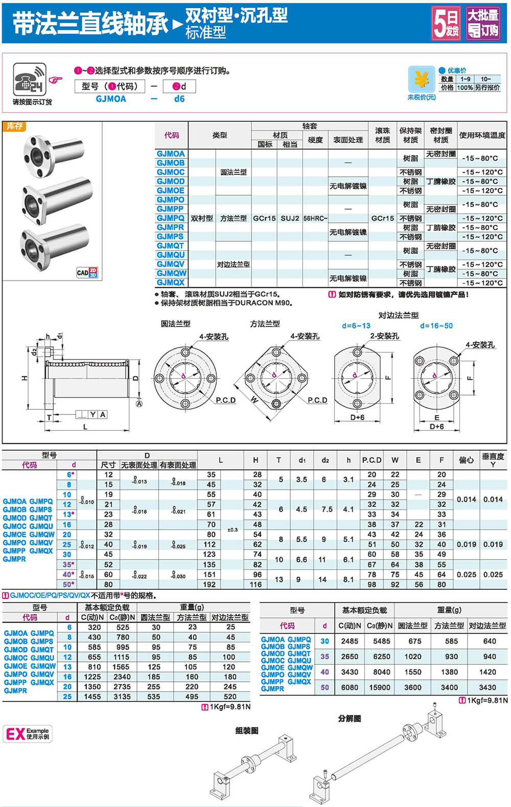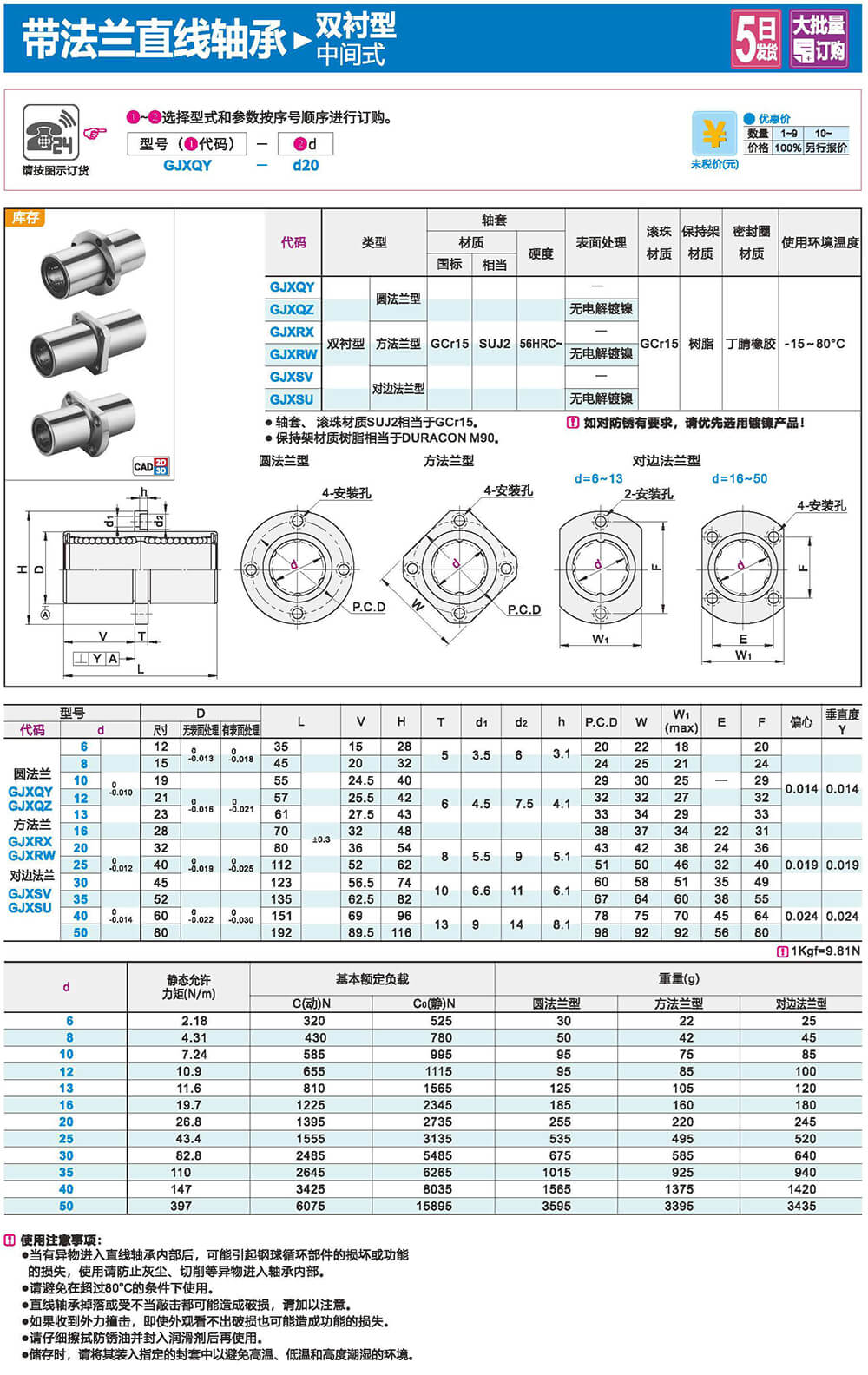 特點:低噪音、低摩擦、高精度、高壽命。由于滾珠和直線軸間為點接觸,因此摩擦力小,運動精度高。
