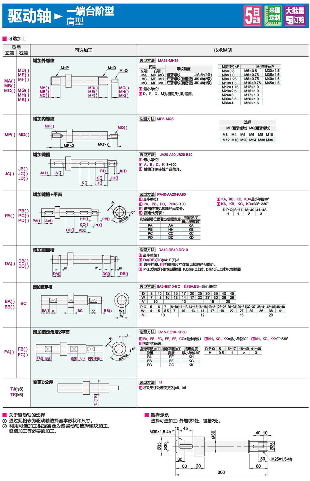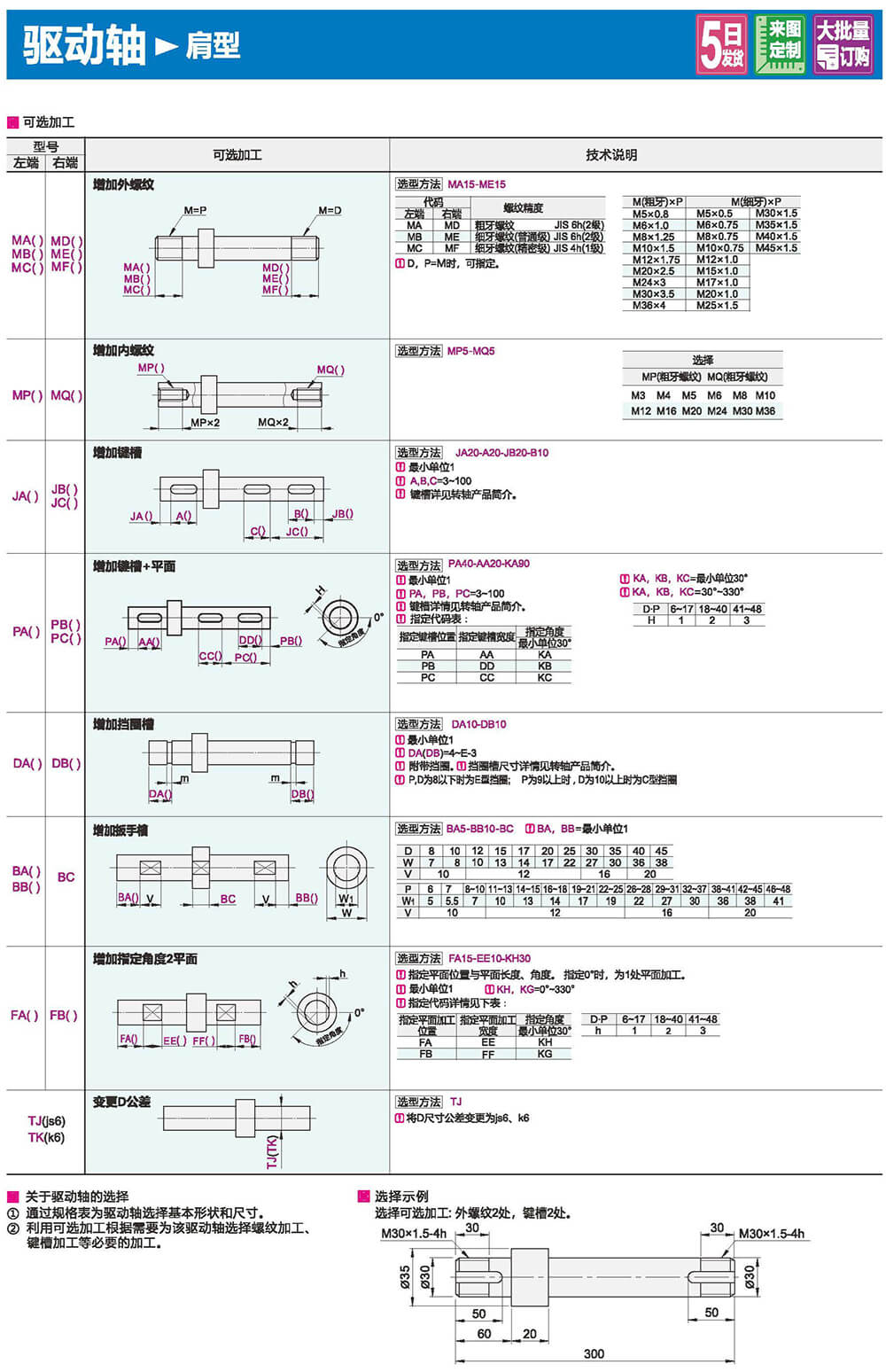 備有便于組裝的h9、h7。g6公差??勺芳渔I槽、扣環(huán)槽。平面、扳手槽等加工。