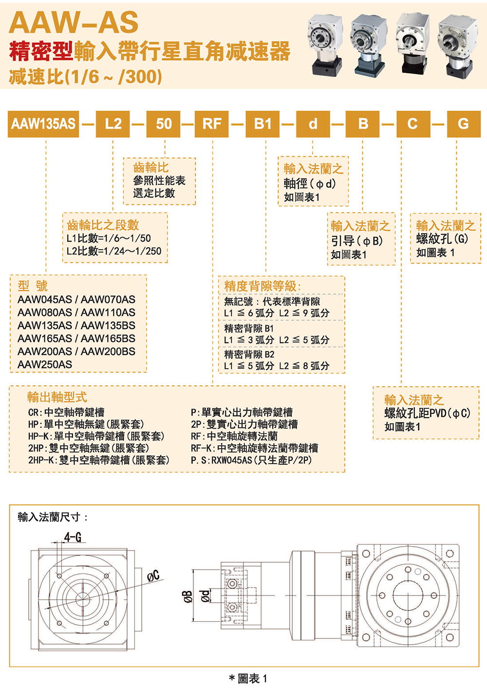 多樣化:輸出軸種類多樣化,有單出力軸型、雙出力軸型、中空軸型、中空法蘭型、中空軸錐形緊迫性、螺桿直線型、螺牙直線型。