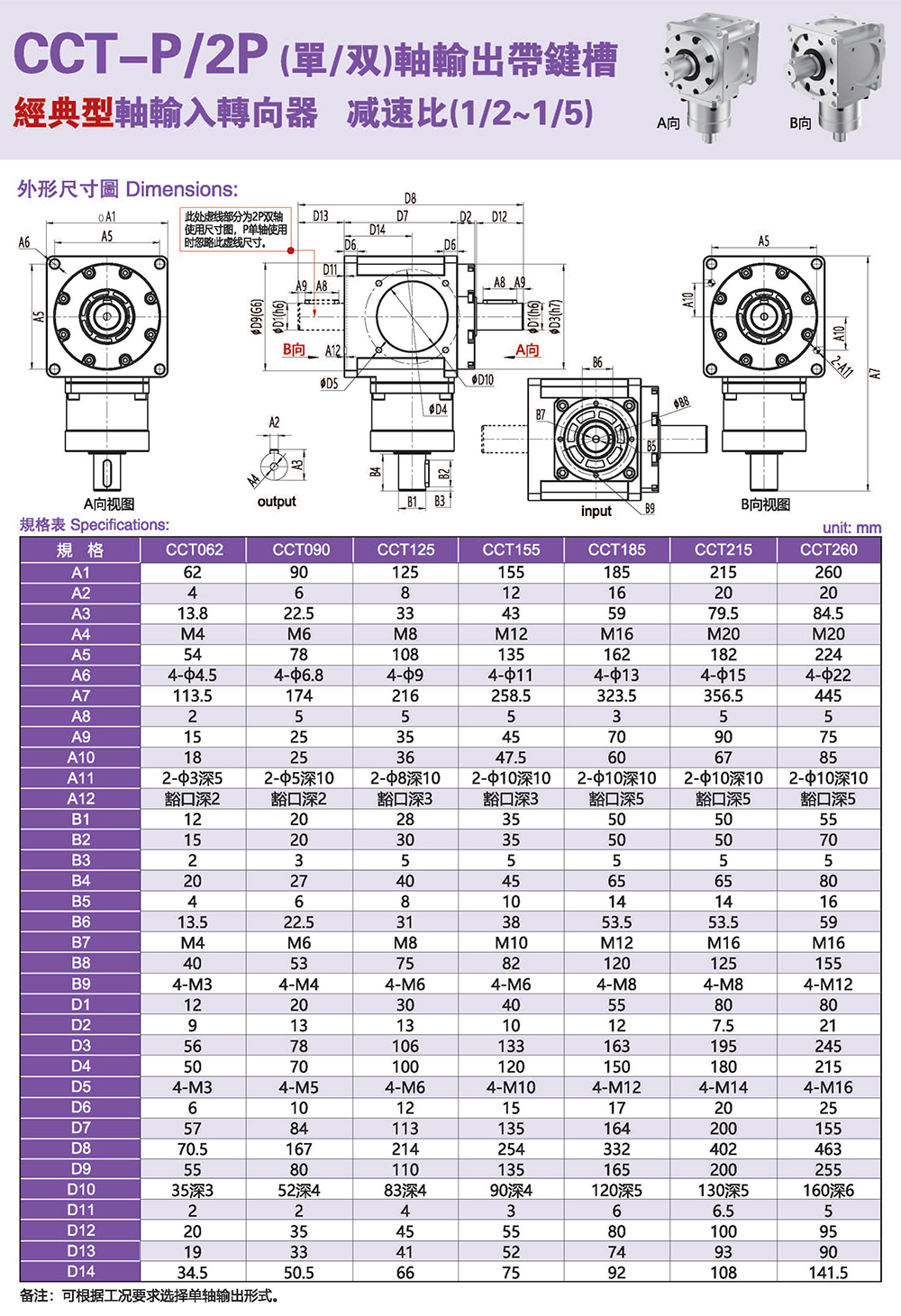 多樣化:輸出軸種類多樣化,有單出力軸型、雙出力軸型、中空軸型、中空法蘭型、中空軸錐形緊迫性、螺桿直線型、螺牙直線型。
