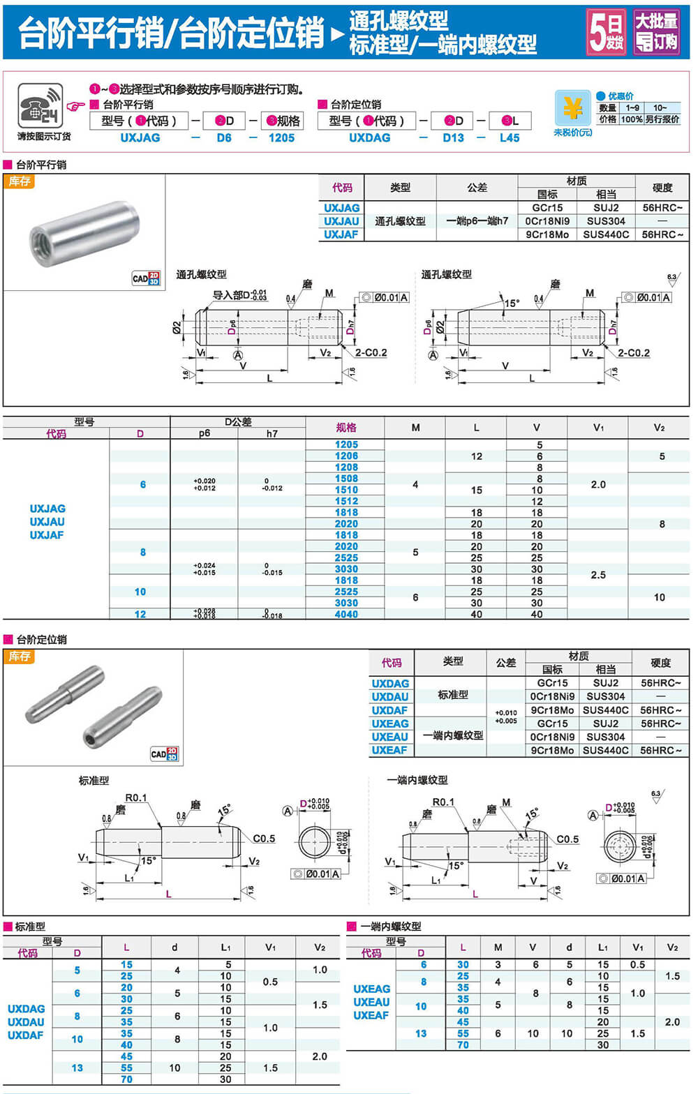 臺(tái)階平行銷/定位銷