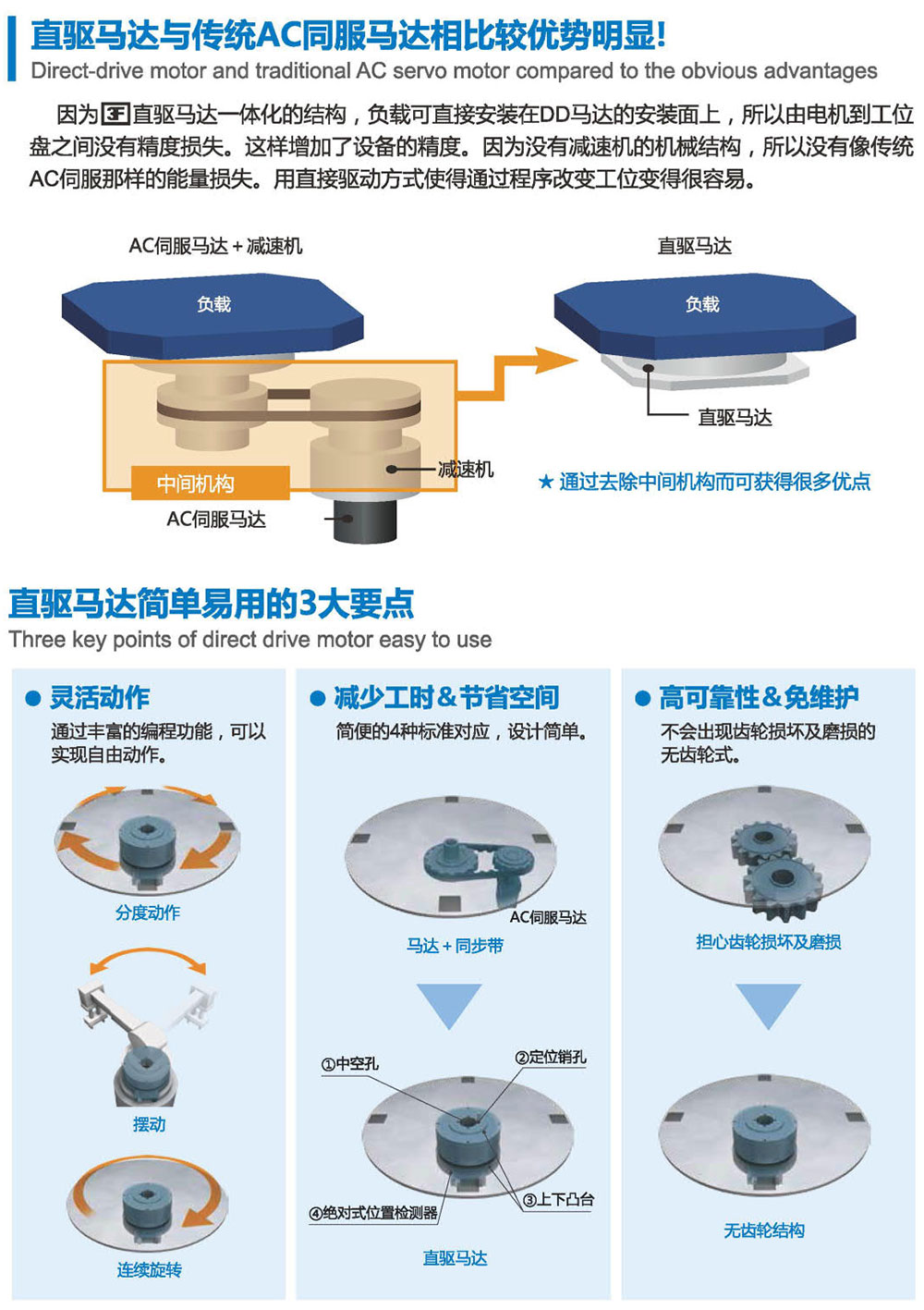 使用整體式滾珠軸承,大大提高了剛性和扭矩。