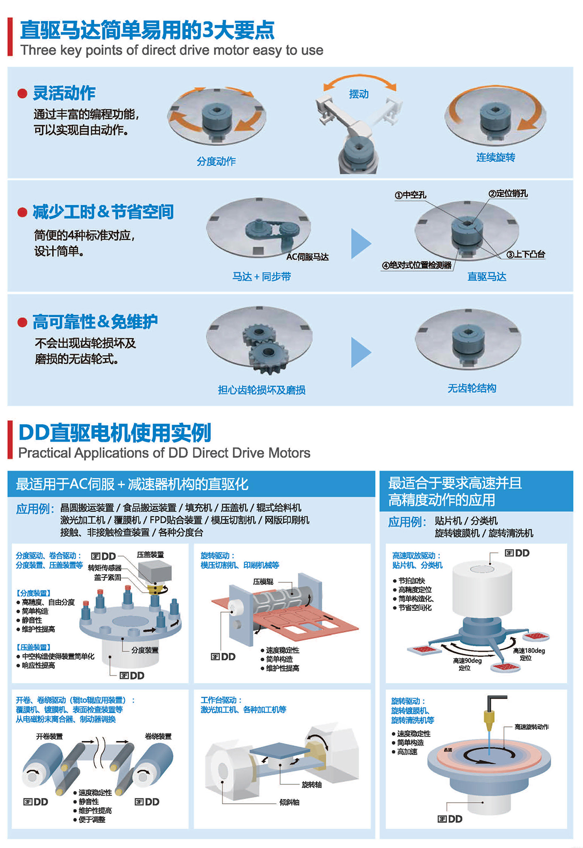 直徑從60mm-490mm、連續(xù)扭矩從1-1200N.m有十幾個(gè)大小可選規(guī)格,絕對(duì)精度可達(dá)±10arc-sec,重復(fù)定位精度可達(dá)0.5arc-sec。具有高精度、高剛性、低軸向徑向跳動(dòng)等優(yōu)點(diǎn),被廣泛應(yīng)用于半導(dǎo)體生產(chǎn)設(shè)備、光媒體、光學(xué)對(duì)位、定位檢測(cè)、精密數(shù)控機(jī)床、汽車裝配檢測(cè)、液晶制造設(shè)備、屏幕貼合設(shè)備、鋰電池制造設(shè)備、高端絲印設(shè)備及醫(yī)療器械等微精密高端制造業(yè)領(lǐng)域.