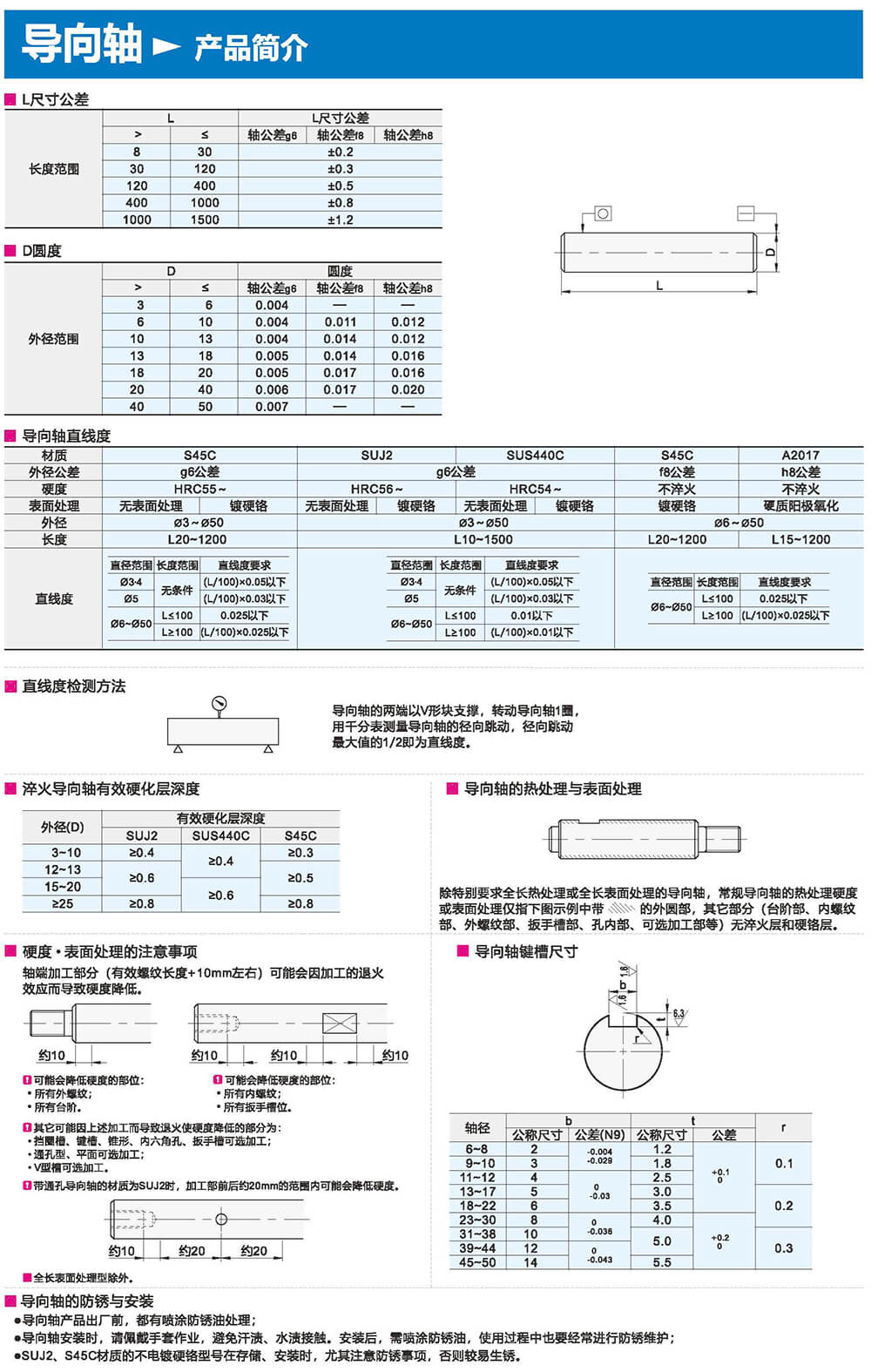 導(dǎo)向軸的兩端以V形塊支撐,轉(zhuǎn)動(dòng)導(dǎo)向軸1圈, 用干分表測(cè)量導(dǎo)向軸的徑向跳動(dòng),徑向眺動(dòng) 最大值的1/2即為直線度。