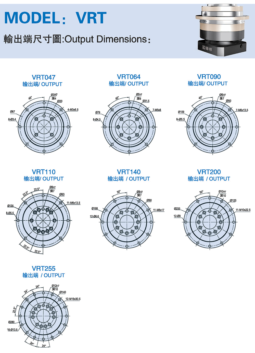 多樣化:輸出軸種類多樣化,有單出力軸型、雙出力軸型、中空軸型、中空法蘭型、中空軸錐形緊迫性、螺桿直線型、螺牙直線型。
