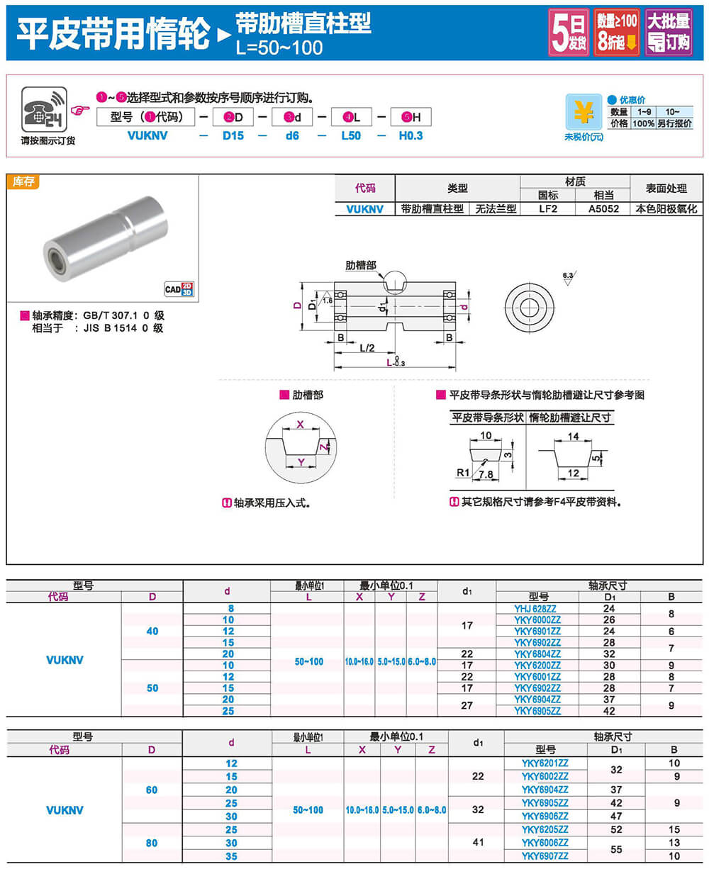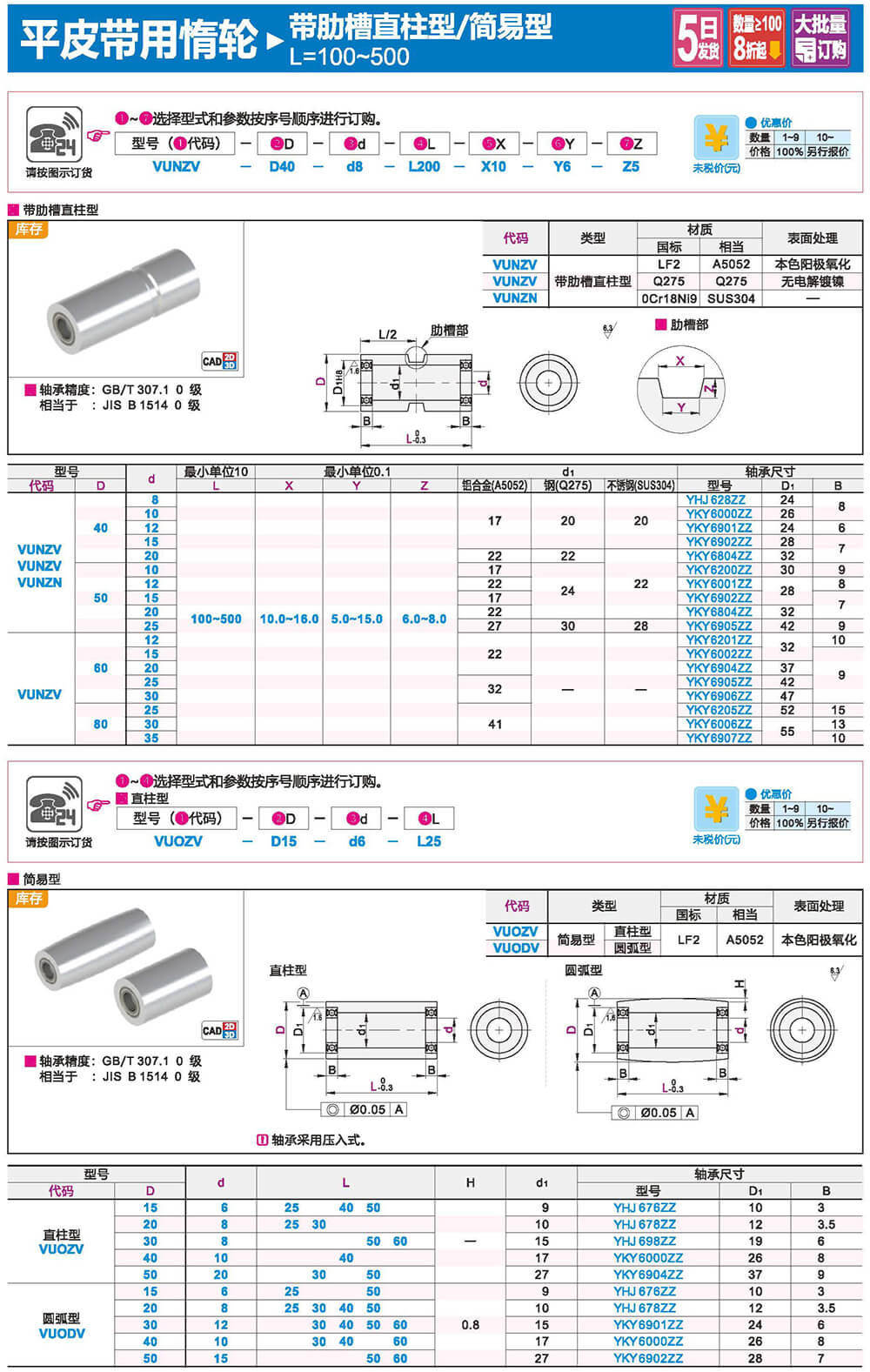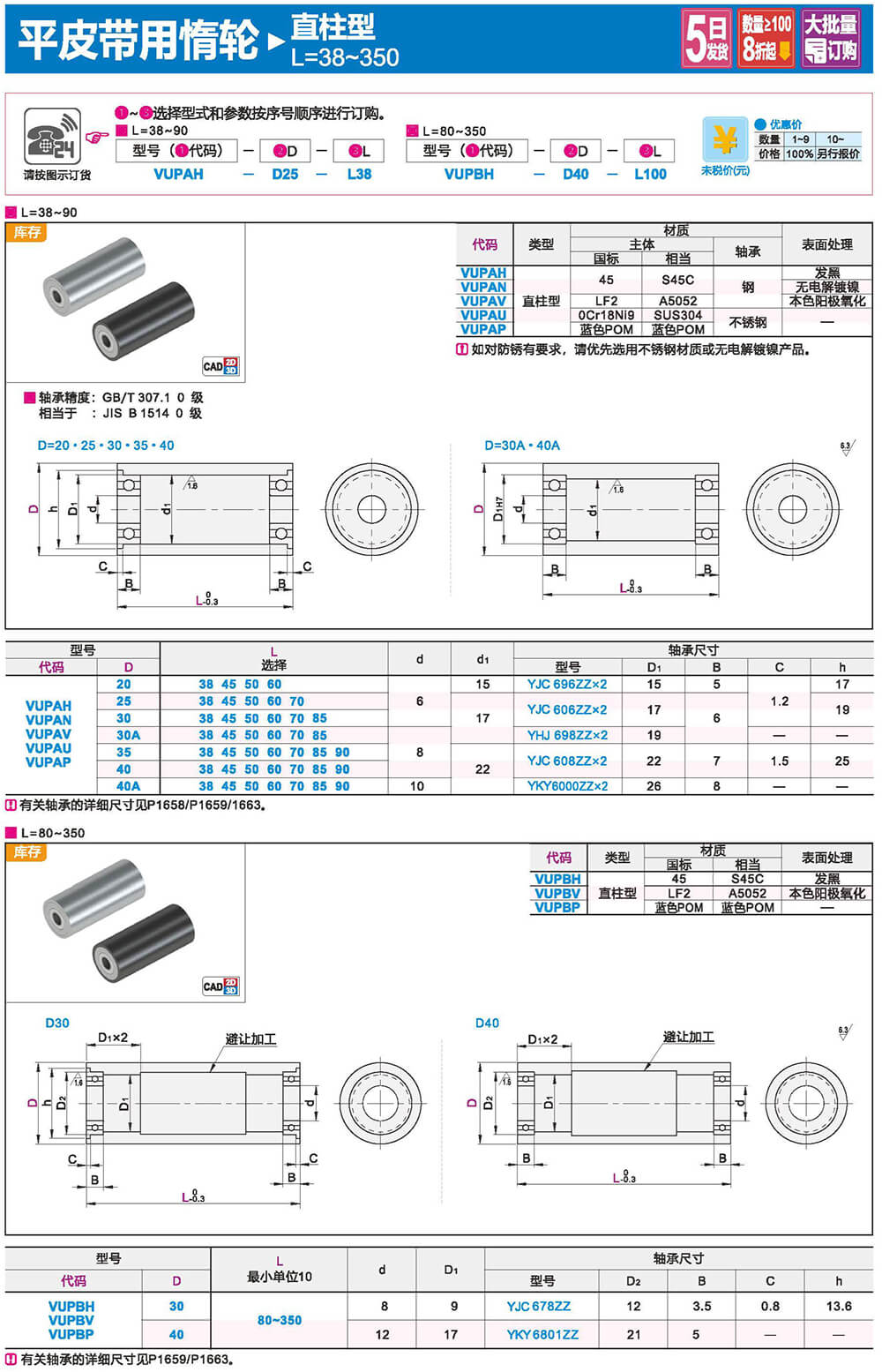 滑輪惰輪在機械設備中與平皮帶圓皮帶配合使用,起到動力傳遞、輸出、過渡、皮帶張緊用等,用于皮帶張緊時也可稱作張緊輪