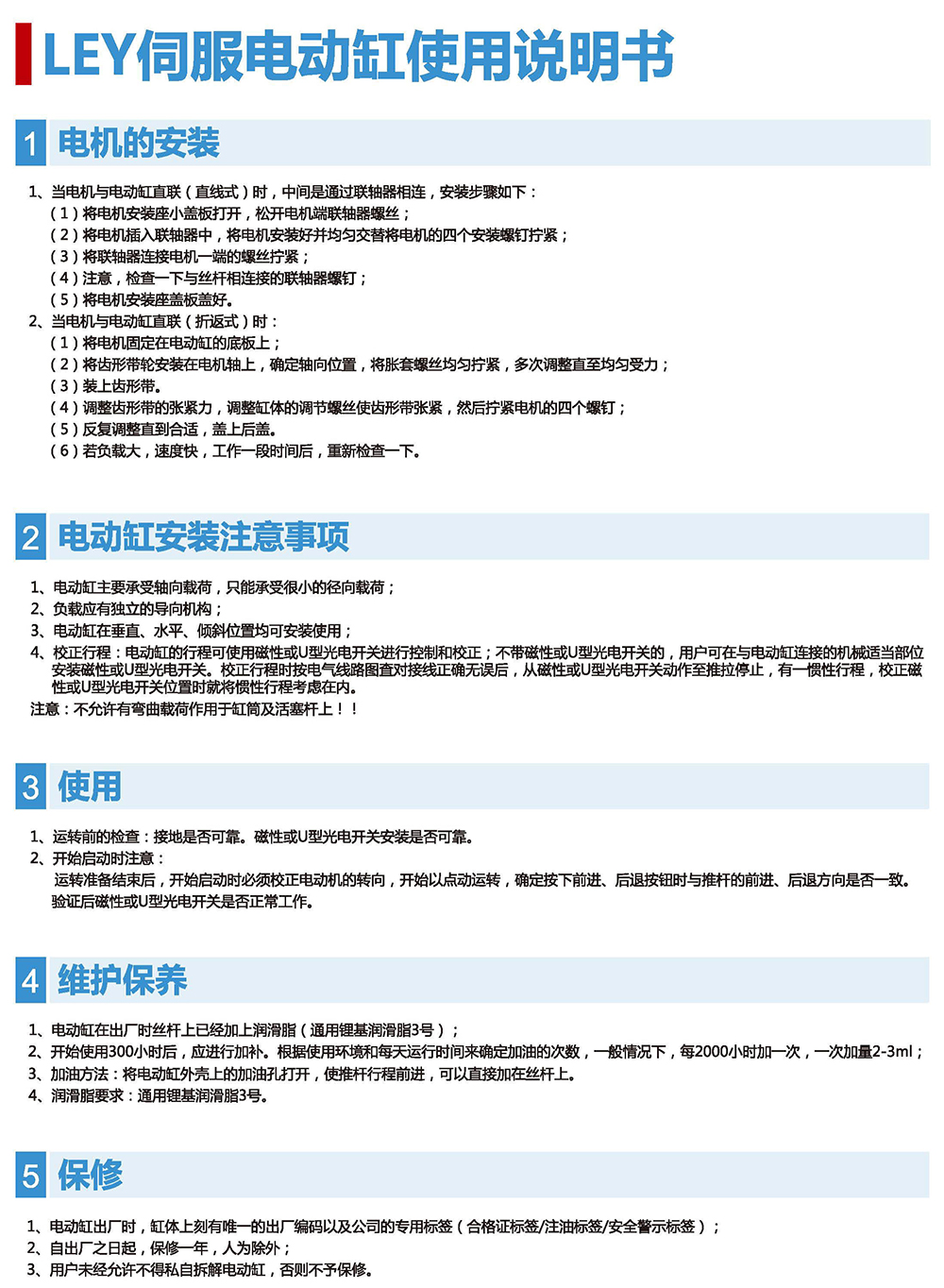 LEY伺服電動缸主要特性