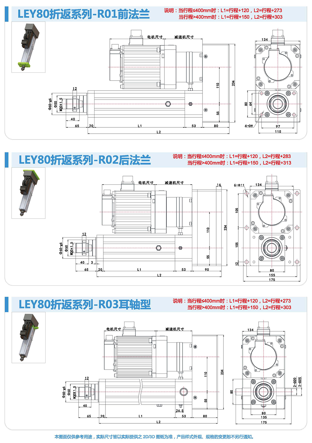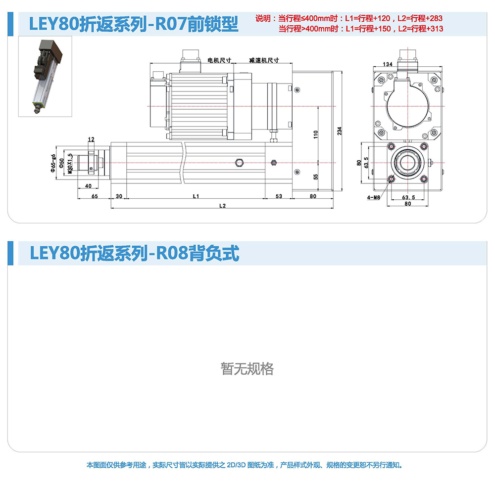 折返式電動缸由于整體長度短,適用于安裝位置比較小的場合。同時(shí)本方案選用的同步帶,具有強(qiáng)度高、間隙小壽命長的特點(diǎn),使整個(gè)電動缸具有較高的控制性和控制精度。伺服電機(jī)與電動缸配合靈活,安裝容易,設(shè)定簡單,使用方便。