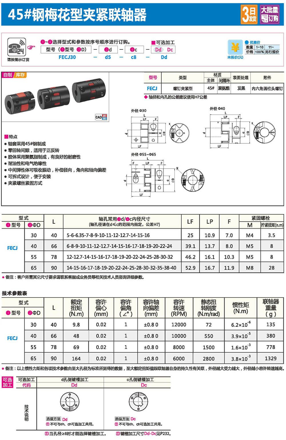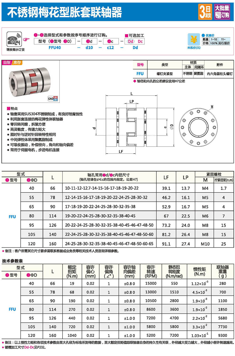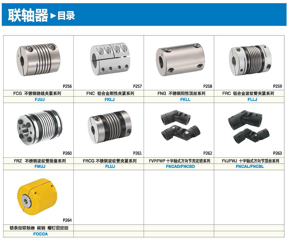 聯(lián)軸器是連接2個不同的旋轉(zhuǎn)體(電機軸,滾珠絲杠等),并以傳遞扭矩為目的的零件。通過吸收旋轉(zhuǎn)體間發(fā)生的軸心偏差(偏心.偏角.軸向振幅)減輕組裝調(diào)整的難度。并在發(fā)生意外過負載時,聯(lián)軸器首先損壞、解除旋轉(zhuǎn)體之間的連接,以保護昂貴的動力部及裝置整體。