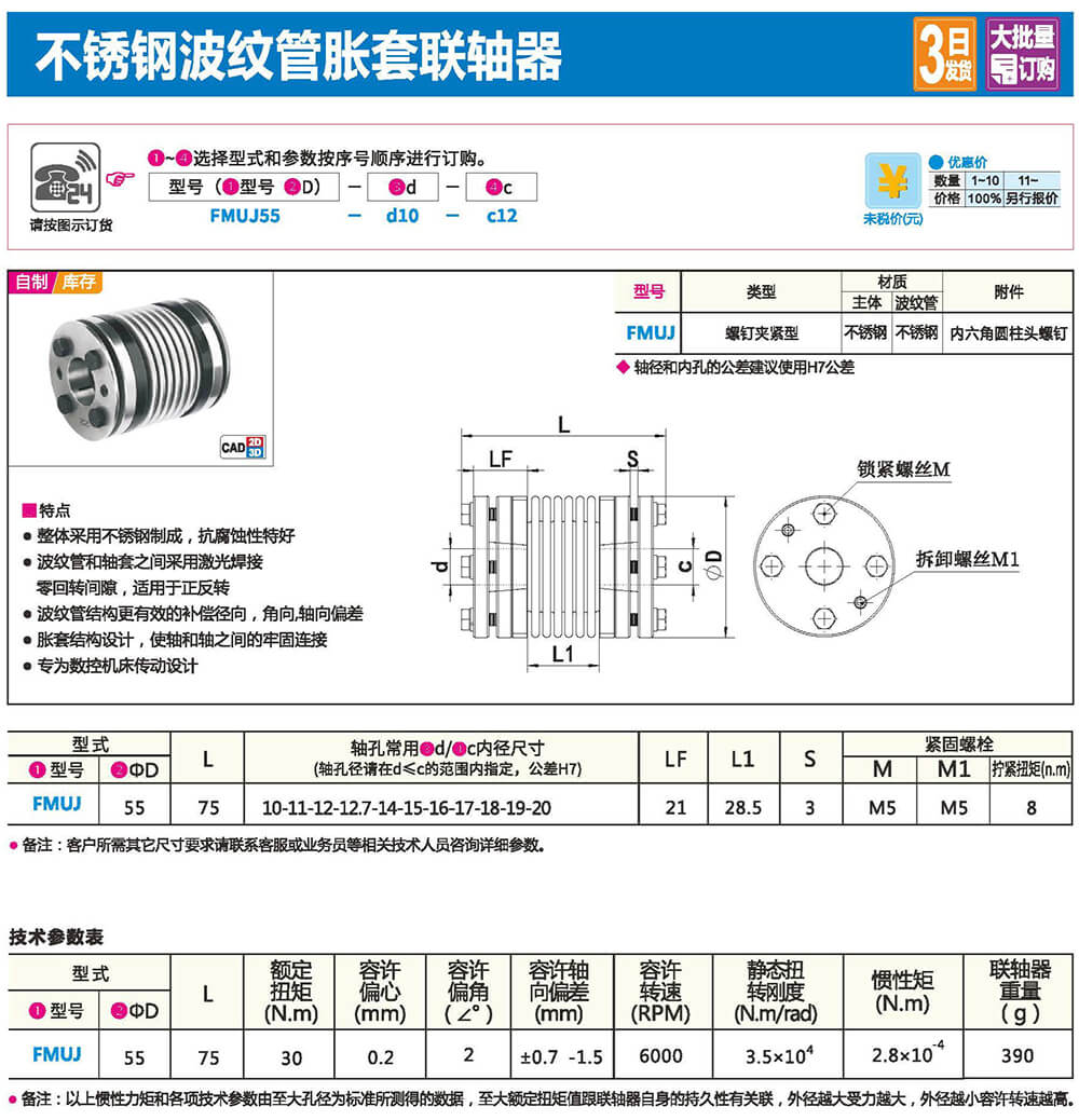 聯(lián)軸器是連接2個(gè)不同的旋轉(zhuǎn)體(電機(jī)軸,滾珠絲杠等),并以傳遞扭矩為目的的零件。通過(guò)吸收旋轉(zhuǎn)體間發(fā)生的軸心偏差(偏心.偏角.軸向振幅)減輕組裝調(diào)整的難度。并在發(fā)生意外過(guò)負(fù)載時(shí),聯(lián)軸器首先損壞、解除旋轉(zhuǎn)體之間的連接,以保護(hù)昂貴的動(dòng)力部及裝置整體。
