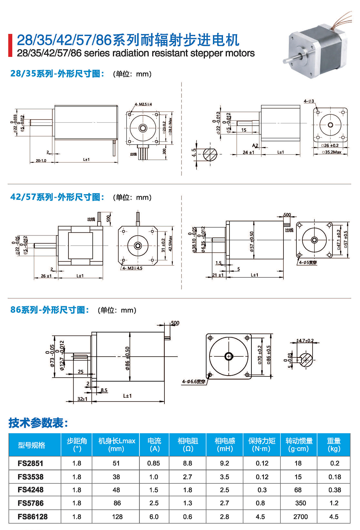 真空步進(jìn)電機(jī)采用全新的設(shè)計(jì),選用合適的材料,通過(guò)新的生產(chǎn)工藝完成對(duì)特殊電機(jī)的制造、檢驗(yàn)。溫度最低達(dá)-40°℃~200°C,真空度優(yōu)于1.0X107Pa。標(biāo)準(zhǔn)設(shè)計(jì)28、35、42、57、86框號(hào)兩相四線制混合式步進(jìn)電機(jī),還可依據(jù)需要訂制其他規(guī)格馬達(dá),或定制耐輻射、抗霉菌、耐沖擊、出軸形式等特殊要求。