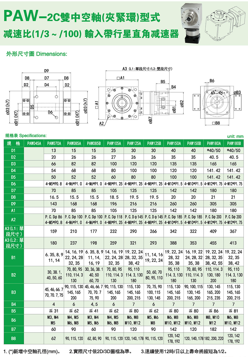 PAW-2C雙中空軸(夾緊環(huán))型式 輸入帶行星直角減速器