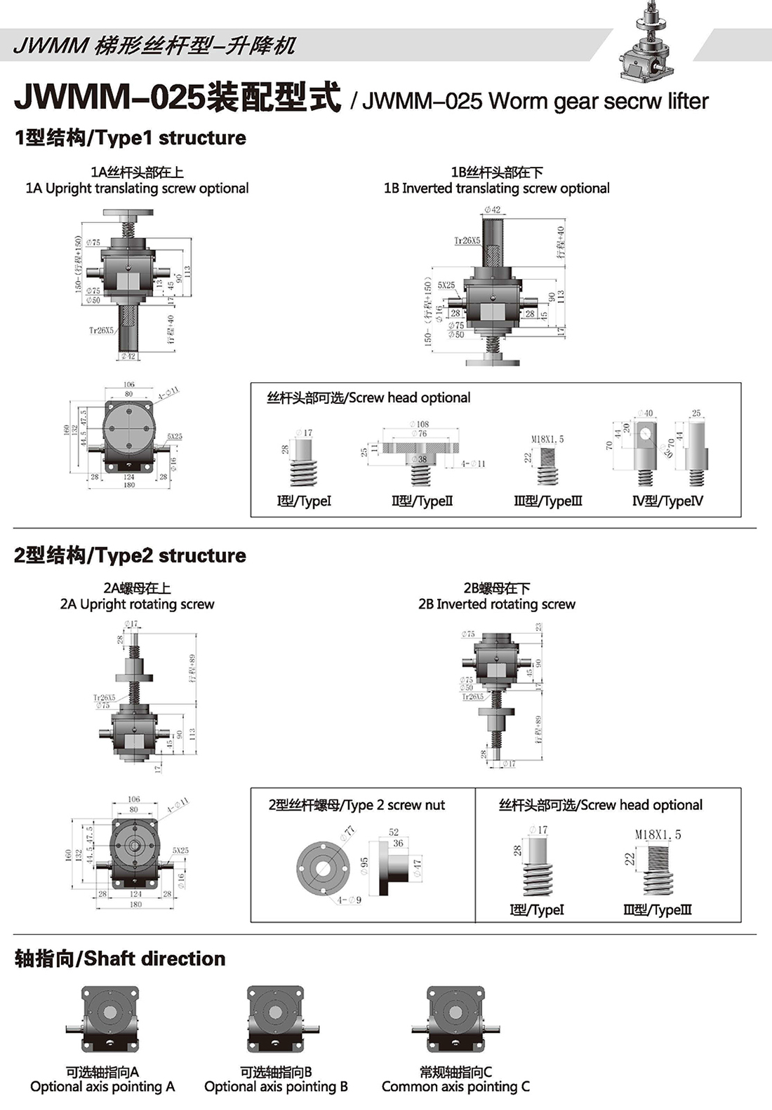 多樣化:輸出軸種類(lèi)多樣化,有單出力軸型、雙出力軸型、中空軸型、中空法蘭型、中空軸錐形緊迫性、螺桿直線型、螺牙直線型。