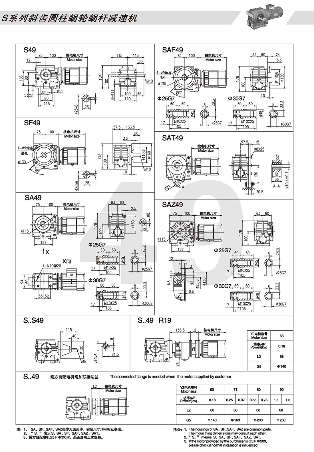 SAZ型B14法蘭空心軸安裝圓柱蝸桿減速機