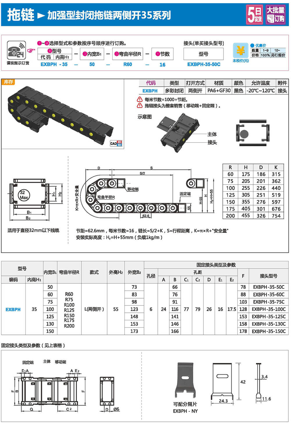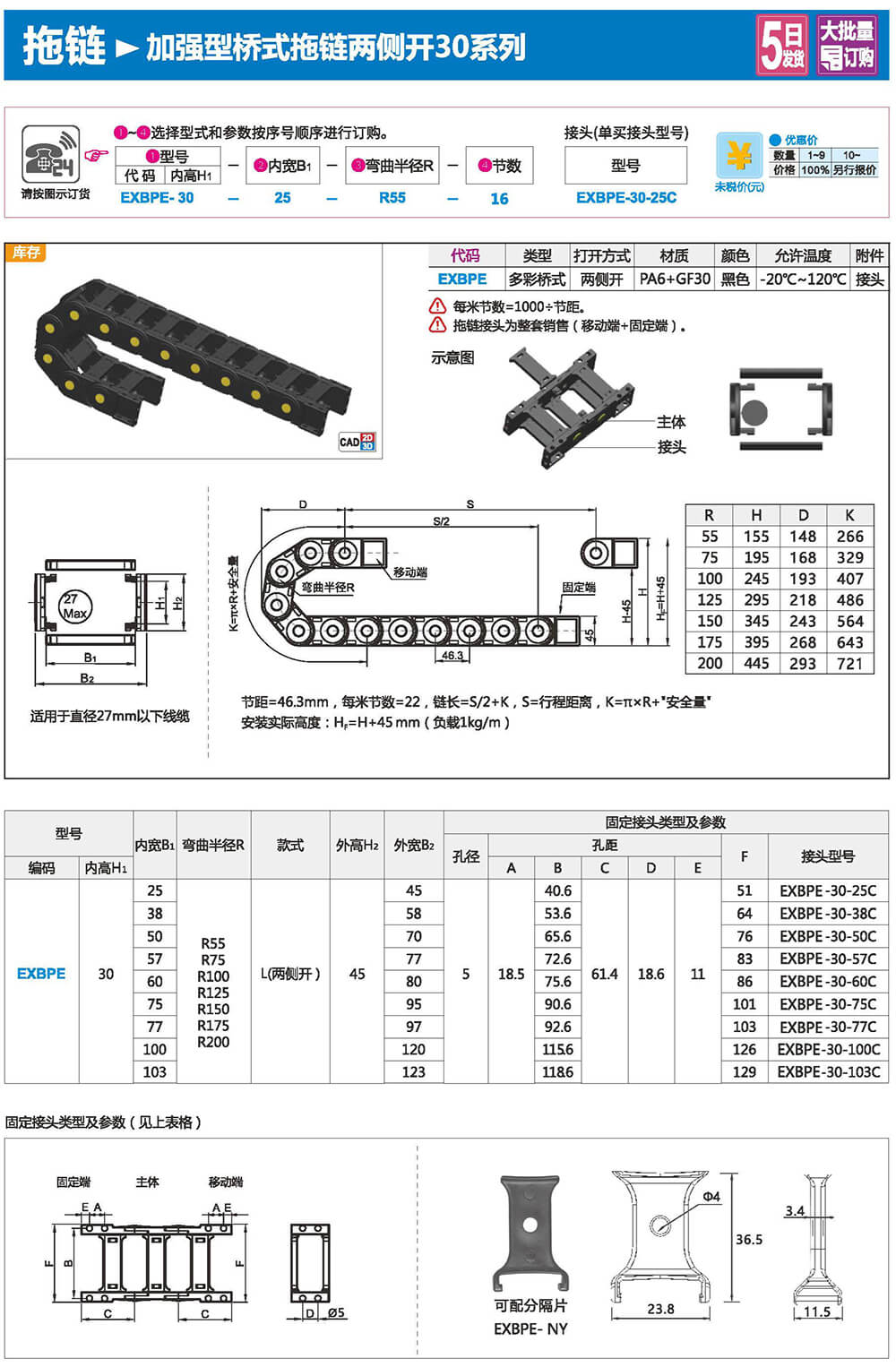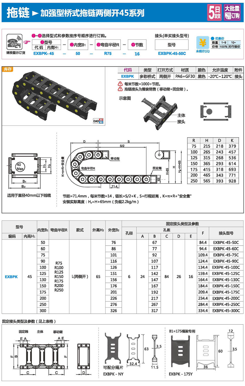 適合于使用在往復運動的場合,能夠?qū)?nèi)置的電纜、油管、氣管、水管等起到牽引和保護作用,拖鏈每節(jié)都能打開,便于安裝和維修。運動時噪音低、耐磨、可高速運動。拖鏈已被廣泛應用于數(shù)控機床.電子設備、石材機械、玻璃機械、門窗機械、注塑機、機械手、起重運輸設備、自動化倉庫等。