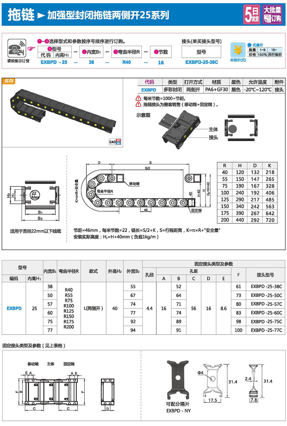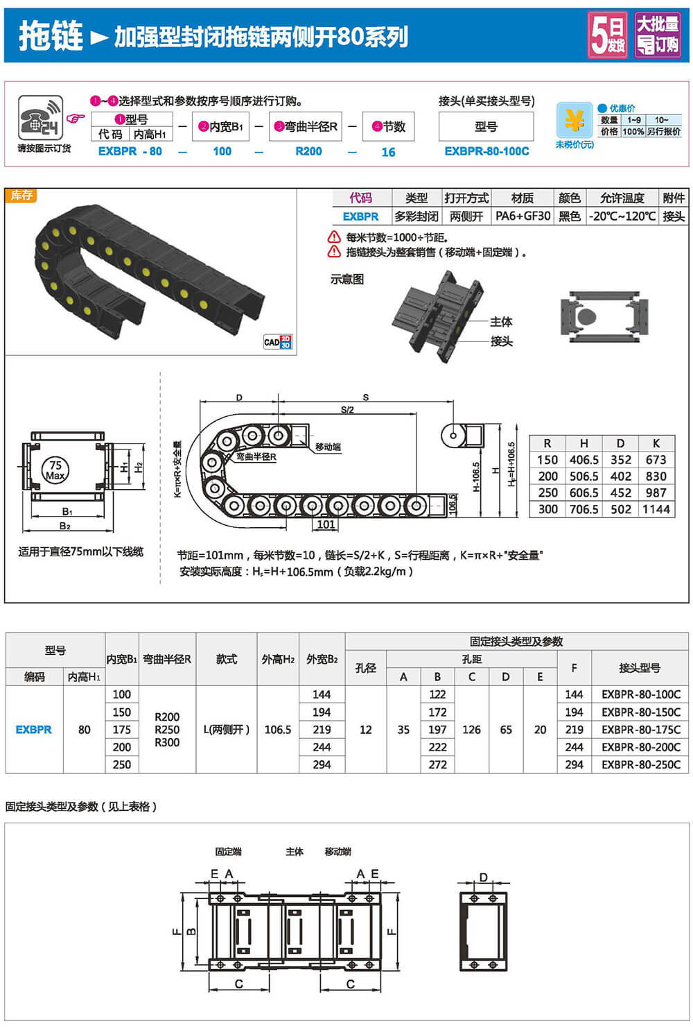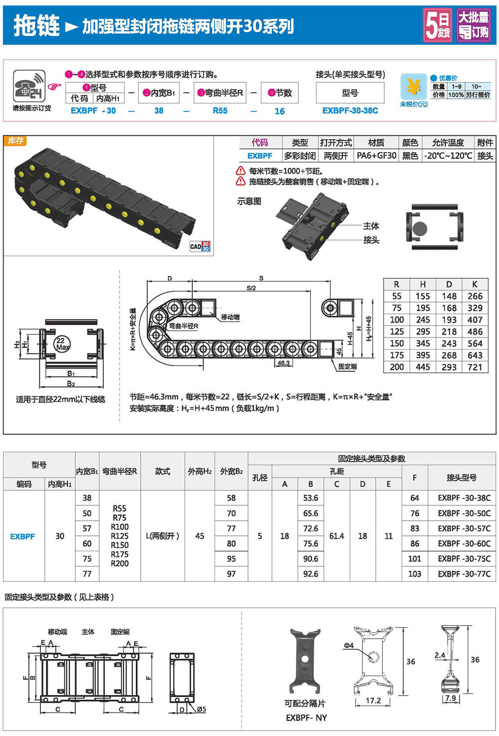 適合于使用在往復運動的場合,能夠?qū)?nèi)置的電纜、油管、氣管、水管等起到牽引和保護作用,拖鏈每節(jié)都能打開,便于安裝和維修。運動時噪音低、耐磨、可高速運動。拖鏈已被廣泛應用于數(shù)控機床.電子設備、石材機械、玻璃機械、門窗機械、注塑機、機械手、起重運輸設備、自動化倉庫等。