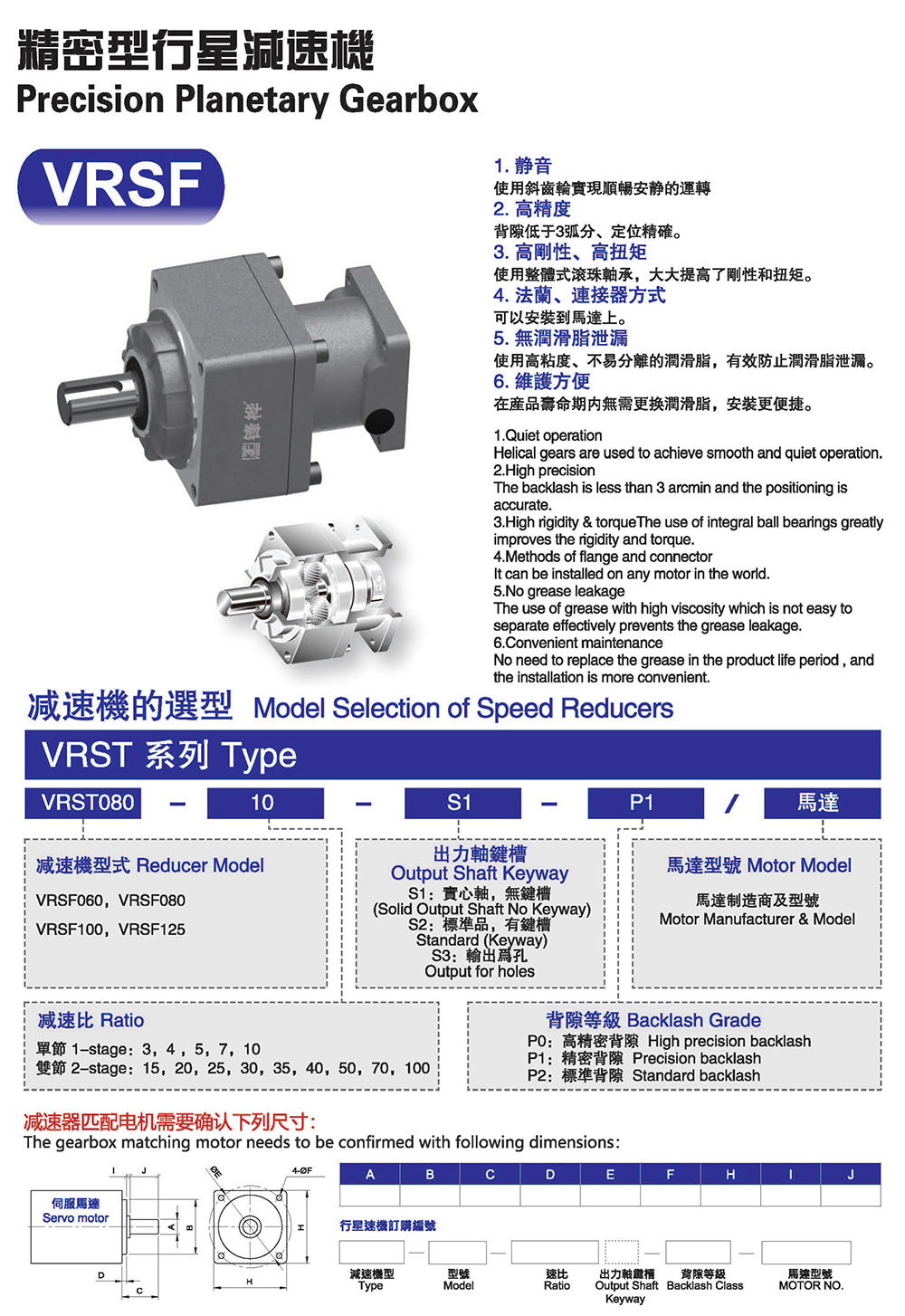 多樣化:輸出軸種類多樣化,有單出力軸型、雙出力軸型、中空軸型、中空法蘭型、中空軸錐形緊迫性、螺桿直線型、螺牙直線型。