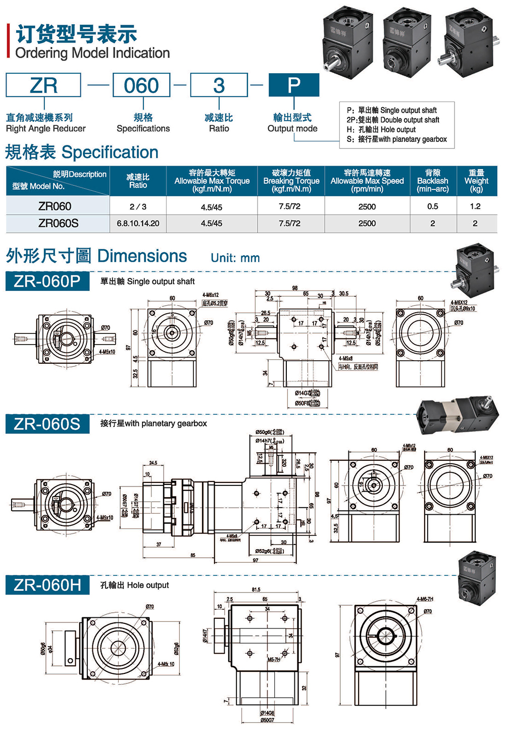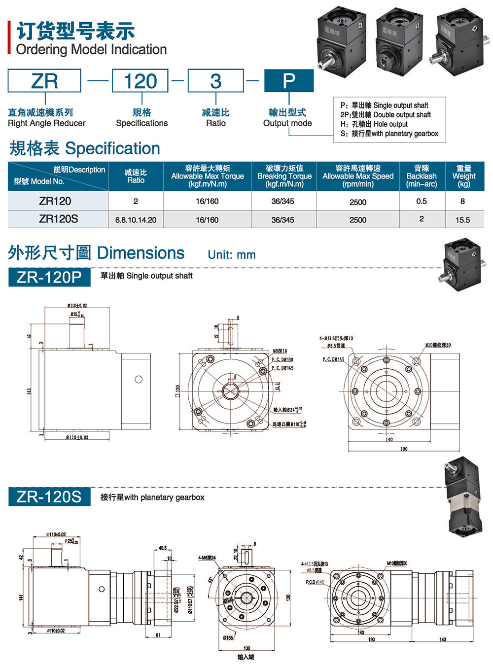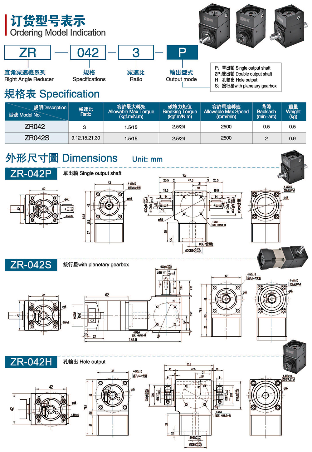 多樣化:輸出軸種類多樣化,有單出力軸型、雙出力軸型、中空軸型、中空法蘭型、中空軸錐形緊迫性、螺桿直線型、螺牙直線型。