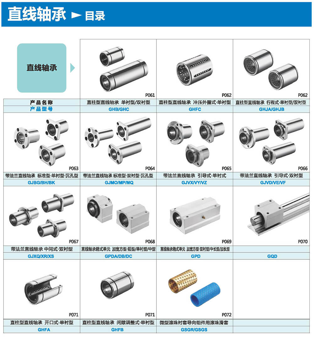 是一種低成本的直線運(yùn)動(dòng)系統(tǒng),用于無限行程與圓柱軸配合使用。由于承載球與軸為點(diǎn)接觸,故使用載荷小。鋼球以極小的摩擦阻力旋轉(zhuǎn),從而能獲得高精度的平穩(wěn)運(yùn)動(dòng)。