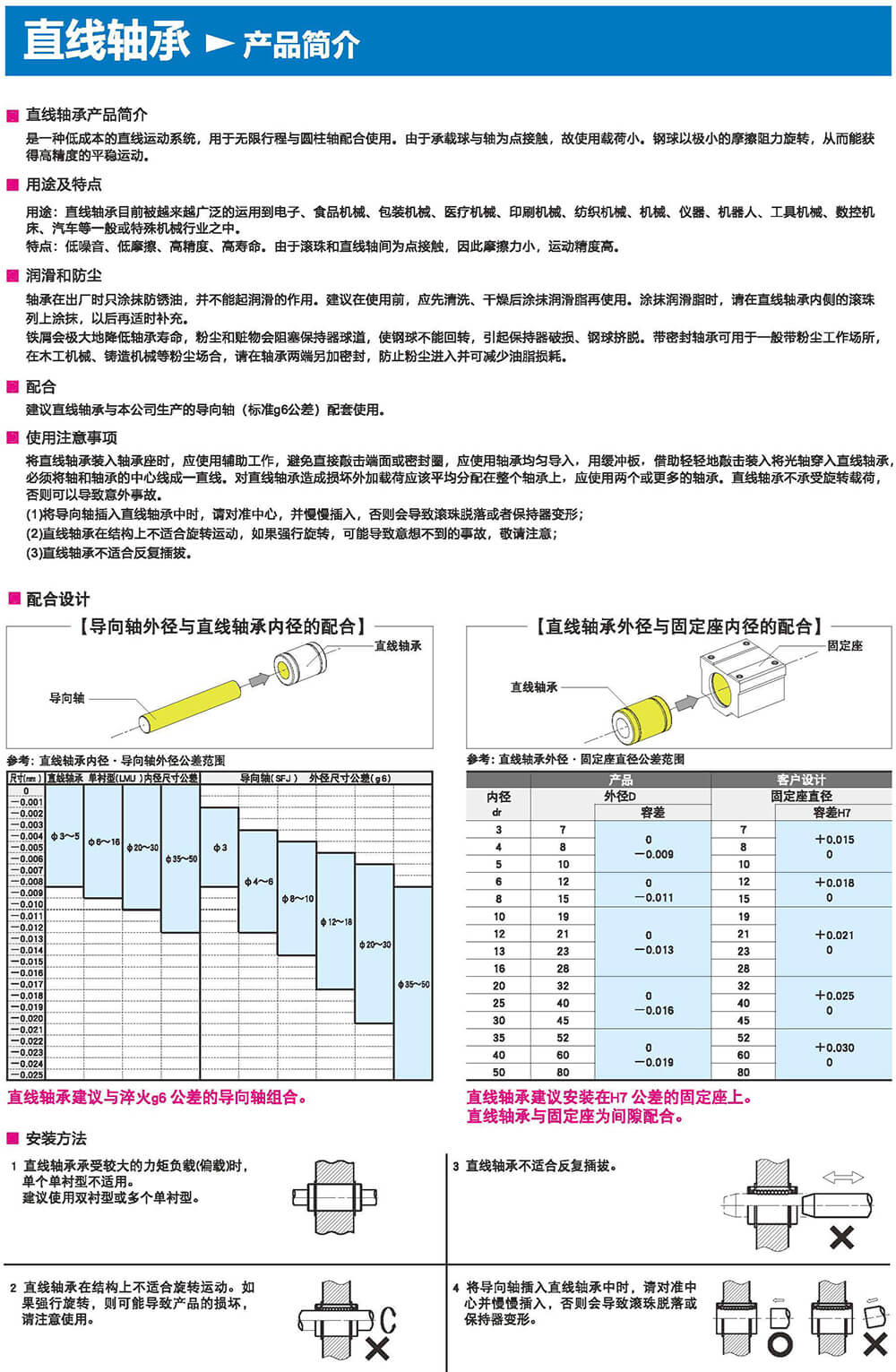 特點(diǎn):低噪音、低摩擦、高精度、高壽命。由于滾珠和直線軸間為點(diǎn)接觸,因此摩擦力小,運(yùn)動(dòng)精度高。